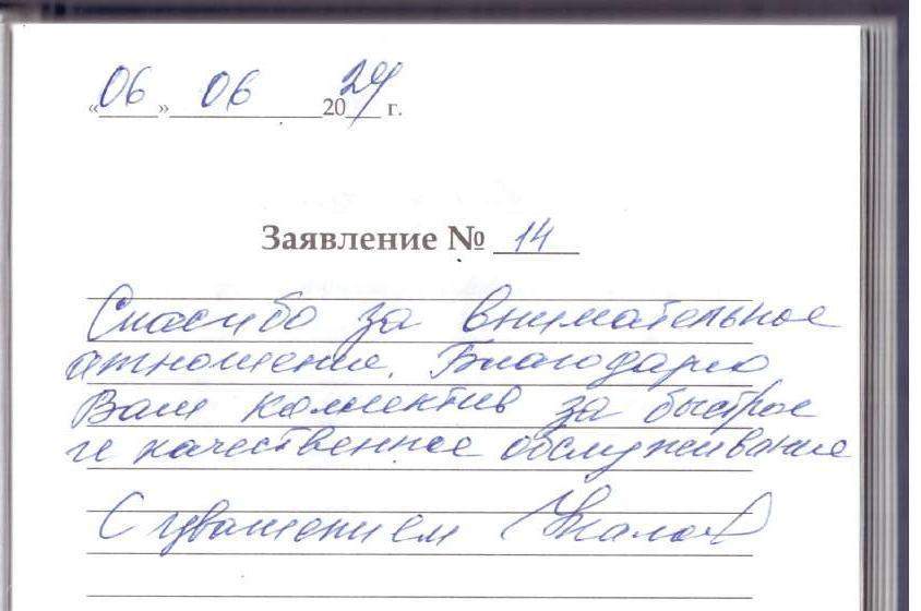Спасибо за внимательное отношение. Благодарю ваш коллектив за быстрое и качественное обслуживание. С уважением Калачева.