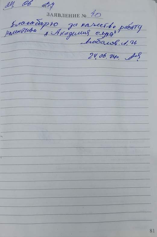 Благодарим коллектив "Академии слуха" за профессиональное отношение. Приходим с удовольствием, очень хорошие впечатления от приёма.