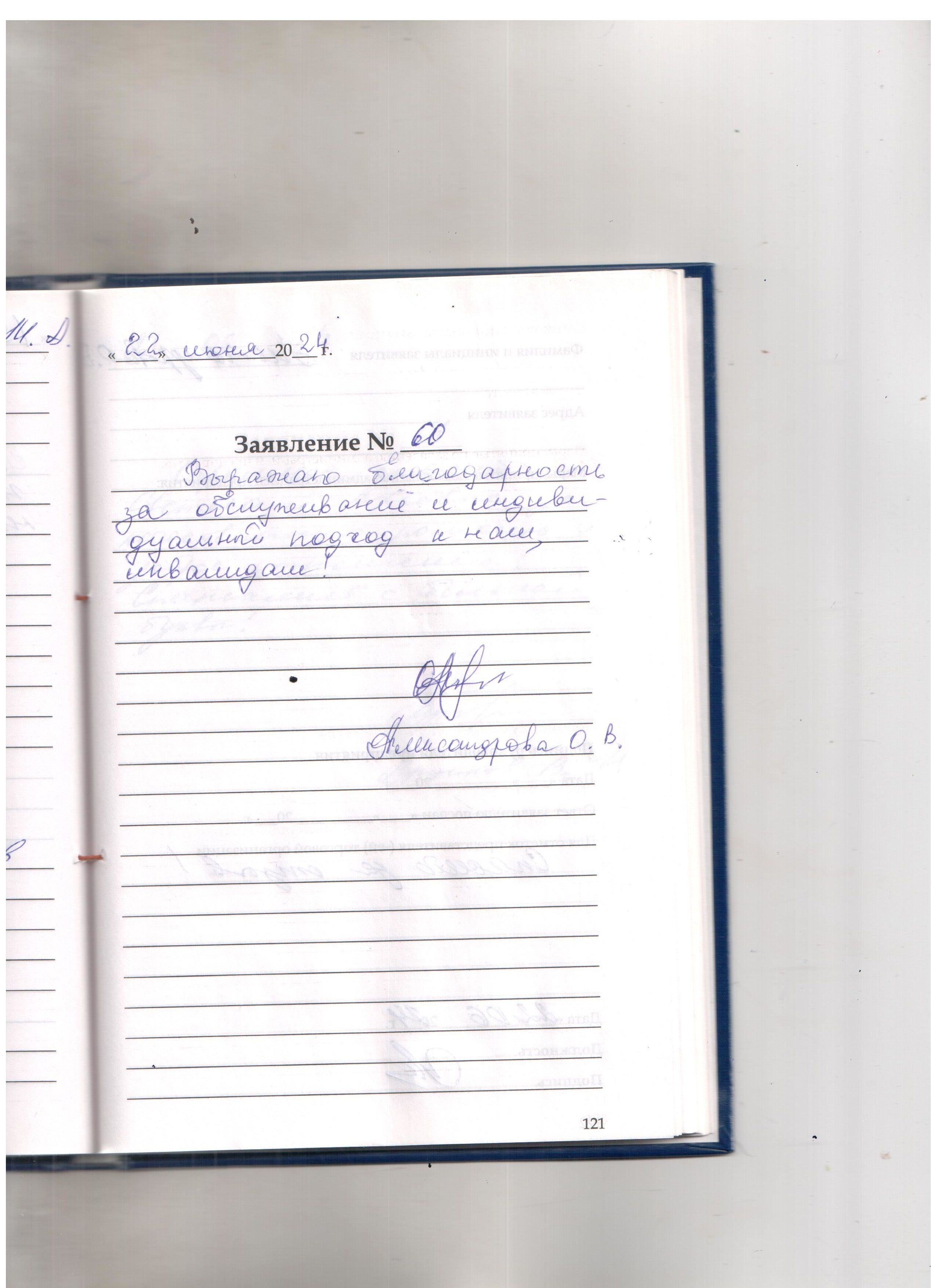 Выражаю благодарность за обслуживание и индивидуальный подход к нам, инвалидам!