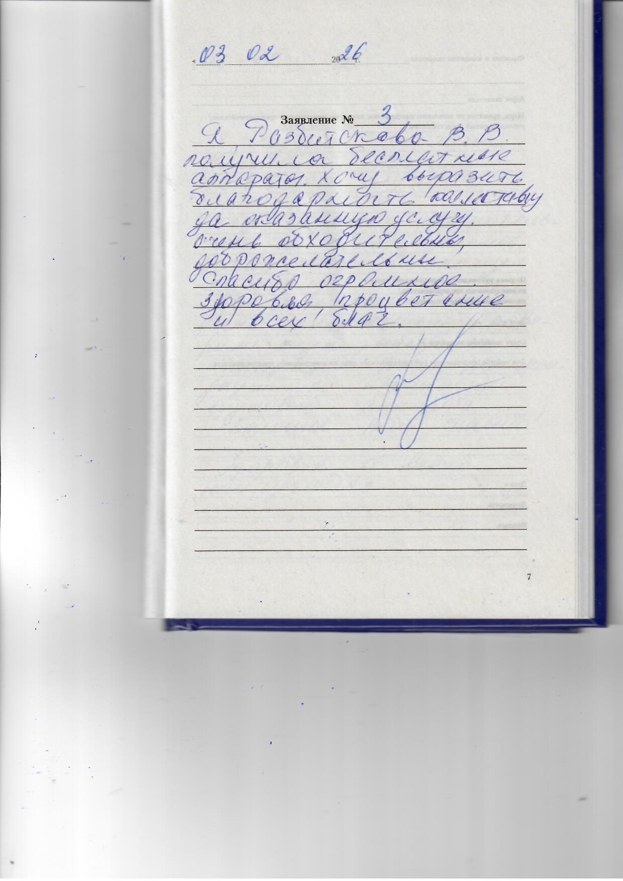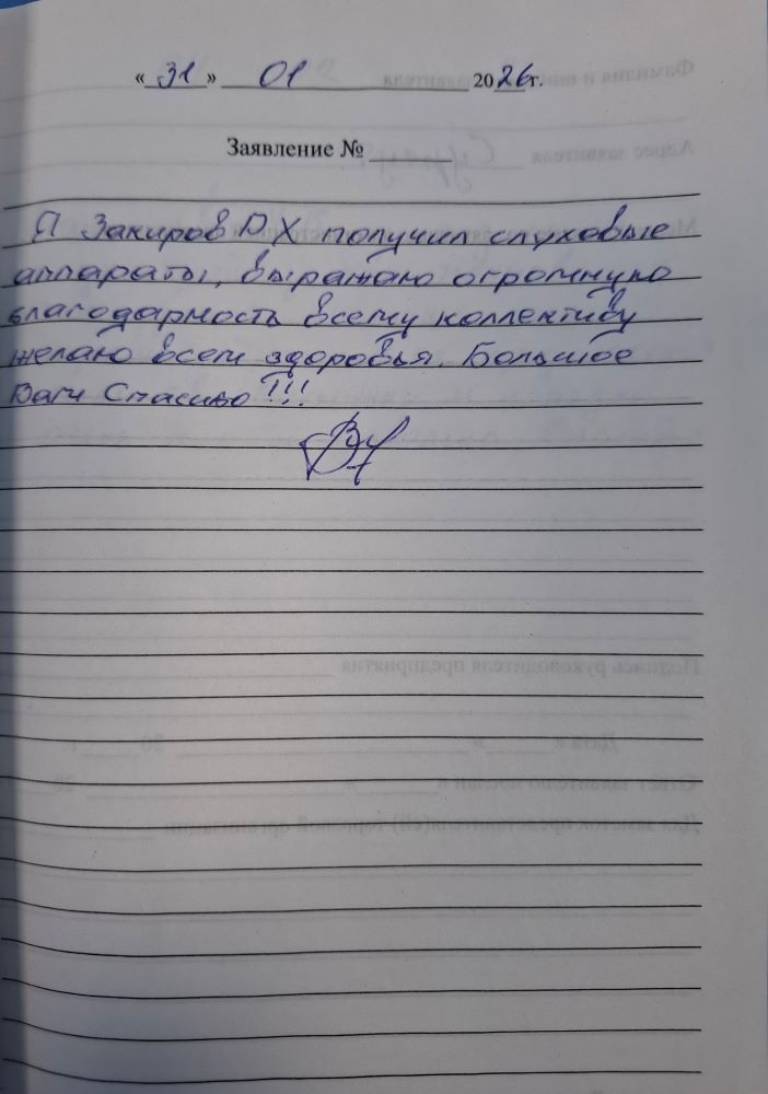 Я, Разбитскова В.В Получила бесплатные аппараты. Хочу выразить благодарность коллективу за оказанную услугу. Очень обходительны, доброжелательны. Спасибо огромное, здоровья, процветания и всех благ!!