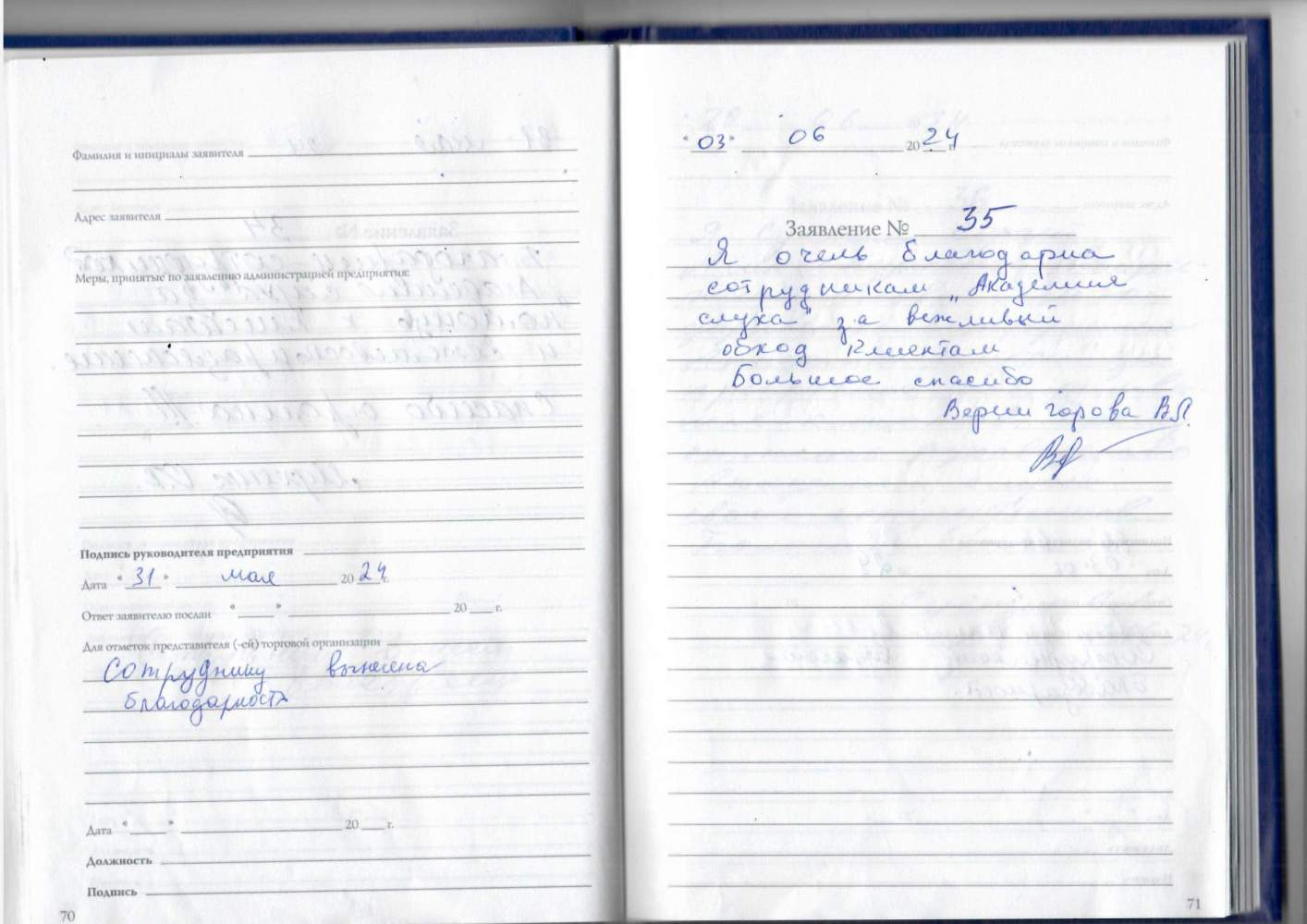 Благодарим сотрудников «Академия слуха» за помощь к клиентам и вежливость и разъяснение. Спасибо огромное !!!