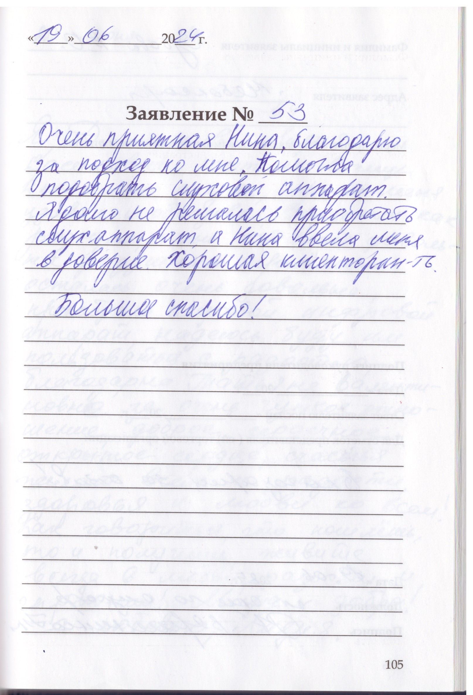 Благодарим за прекрасное обслуживание, консультацию и подбор аппарата слухового Нину Михайловну!