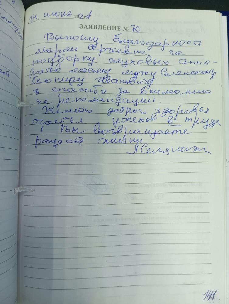 Выношу благодарность Марии Сергеевне за подборку слухового аппарата моему мужу Селянскому Леониду Ивановичу. Спасибо за внимание, за рекомендации. Желаю доброго здоровья, счастья, успехов в труде. Вы возвращаете радость жизни.