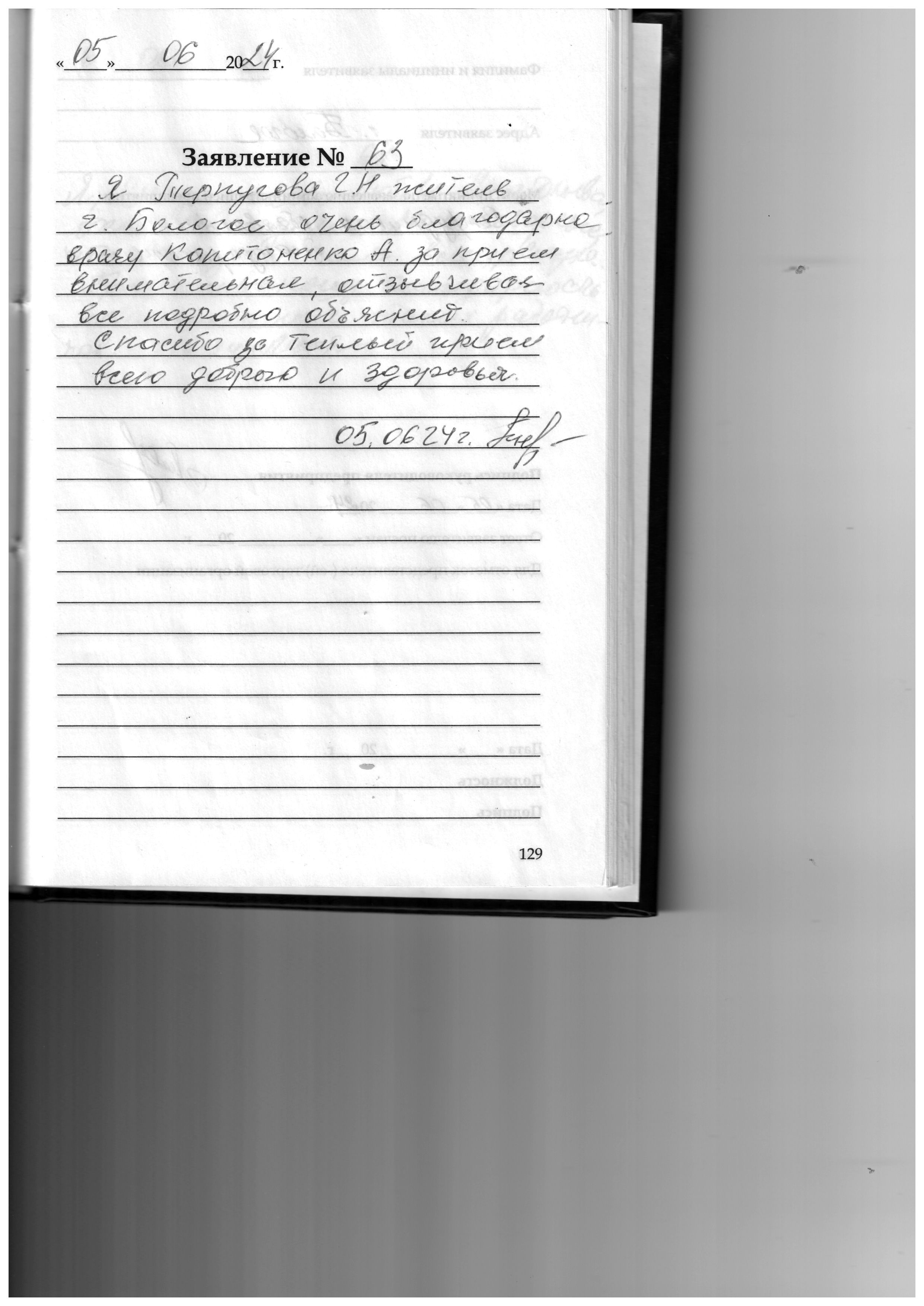 Я, Тергунова Г.Н. житель г. Бологое. Очень благодарна врачу Капитоненко А. за прием. Внимательная, отзывчивая, все подробно объясняет. Спасибо за теплый прием, всего доброго и здоровья.