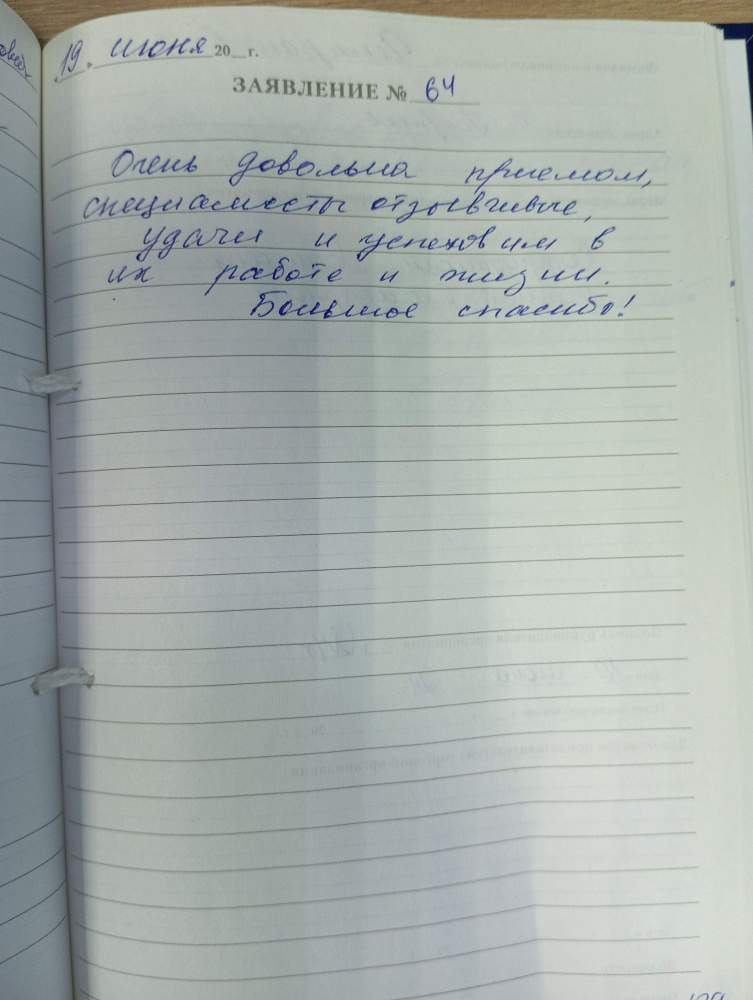 Очень довольна приемом, специалисты отзывчивые, удачи и успехов им в их работе и жизни. Большое спасибо!