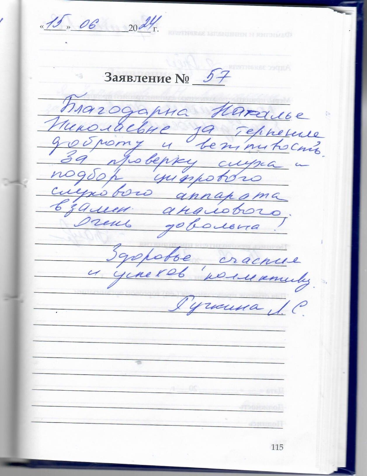 Благодарна Наталье Николаевне за терпение ,доброту и вежливость. За проверку слуха и подбор цифрового слухового аппарата взамен аналоговому.