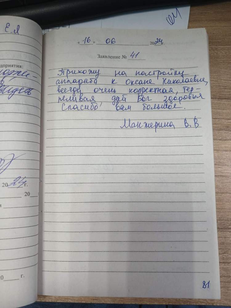 Прихожу на настройку аппаратов к Оксане Николаевне, всегда очень корректная, терпеливая, дай Бог здоровья. Спасибо вам большое.