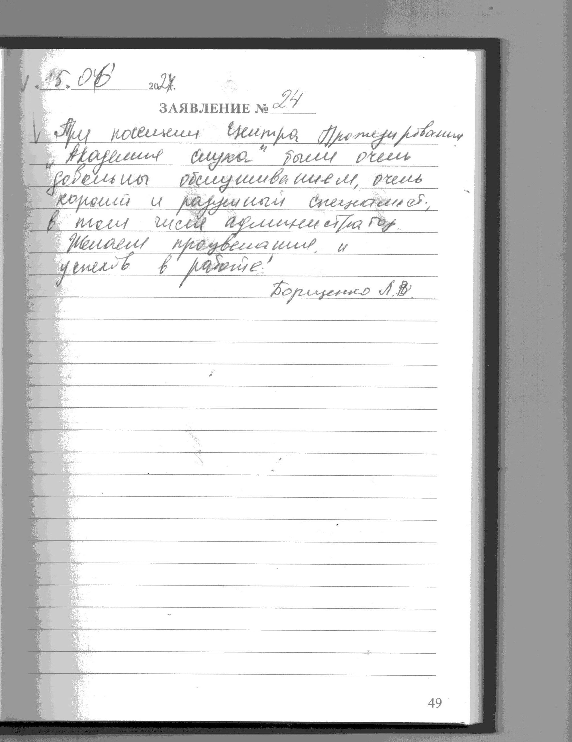 Я, Всемирнова Т.В. выношу сердечную благодарность всему обслуживающему персоналу за то внимание ,которое мне оказали в вашем центре. Желаю всем благополучия ,здоровья и мирного неба над головой. С уважением Всемирнова Т.В.