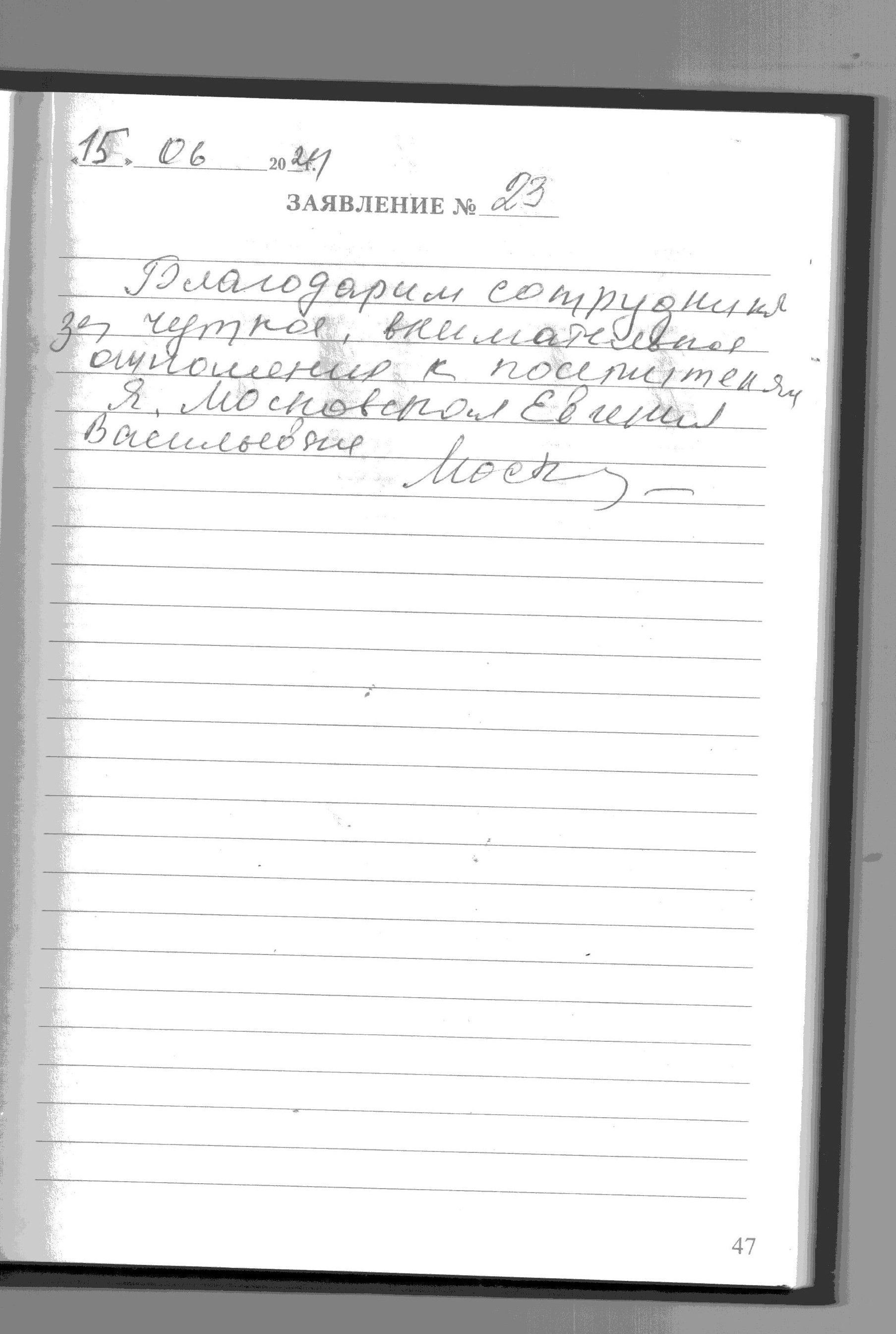 Благодарим сотрудников за чуткое ,внимательное отношение к посетителям. Я Московская Евгения Васильевна.