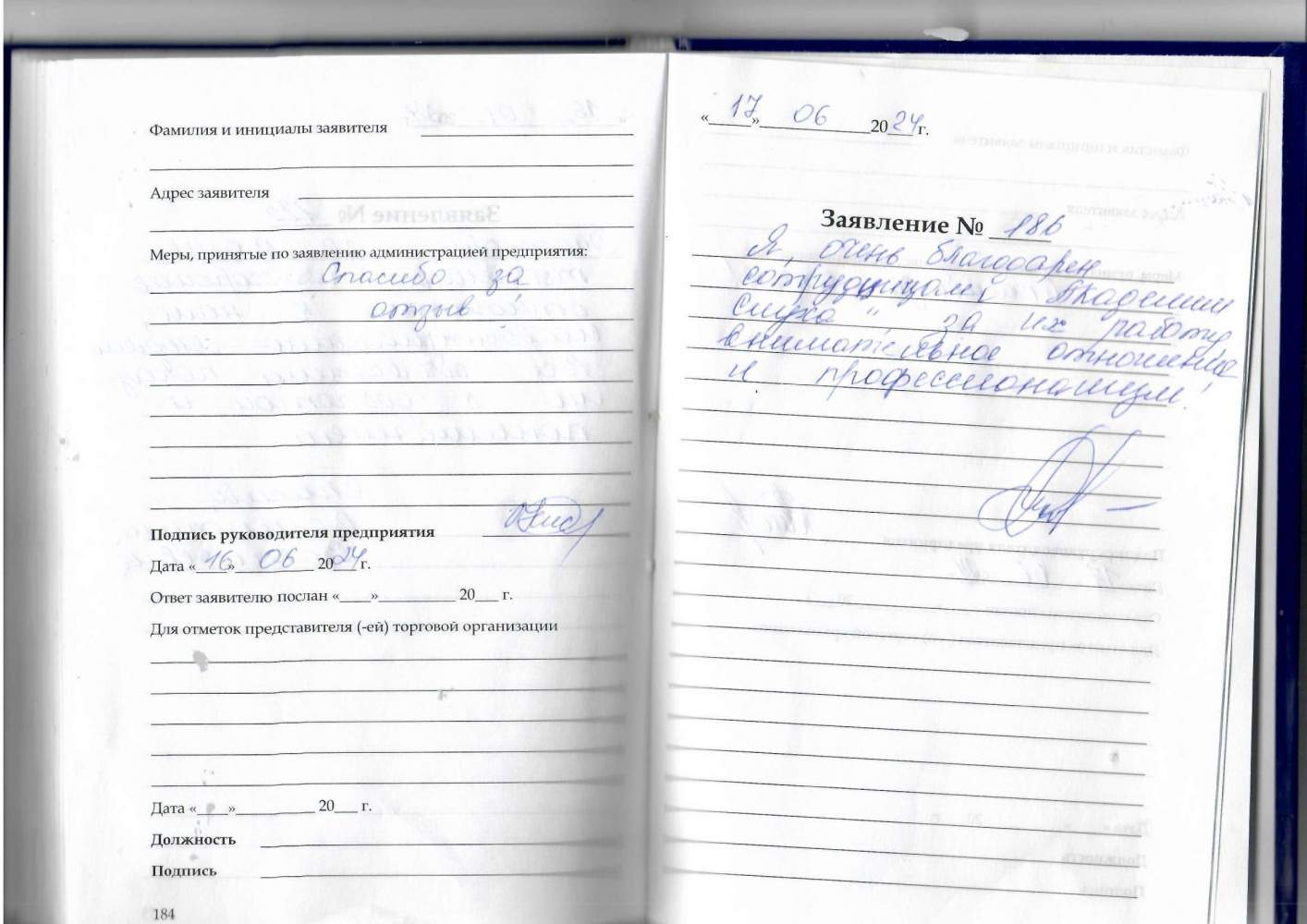 Заявление №184