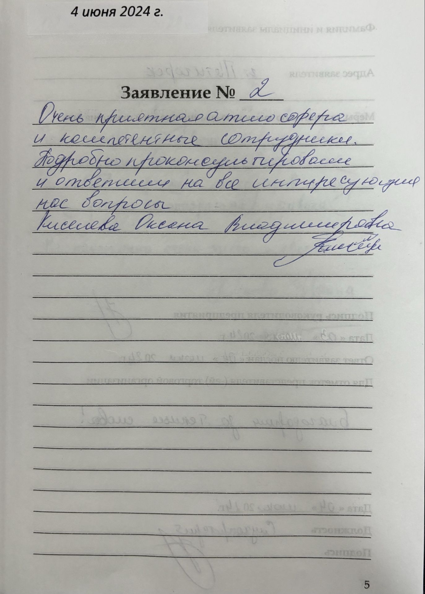 Очень приятная атмосфера и компетентные сотрудники. Подробно проконсультировали и ответили на все интересующие вопросы.