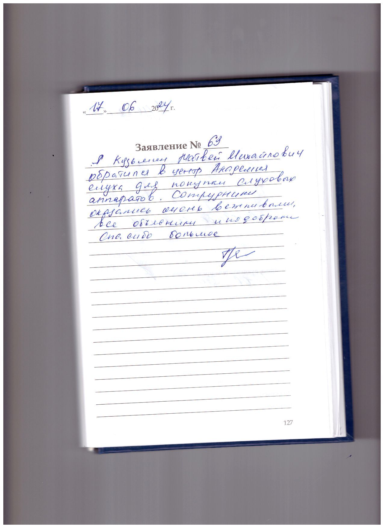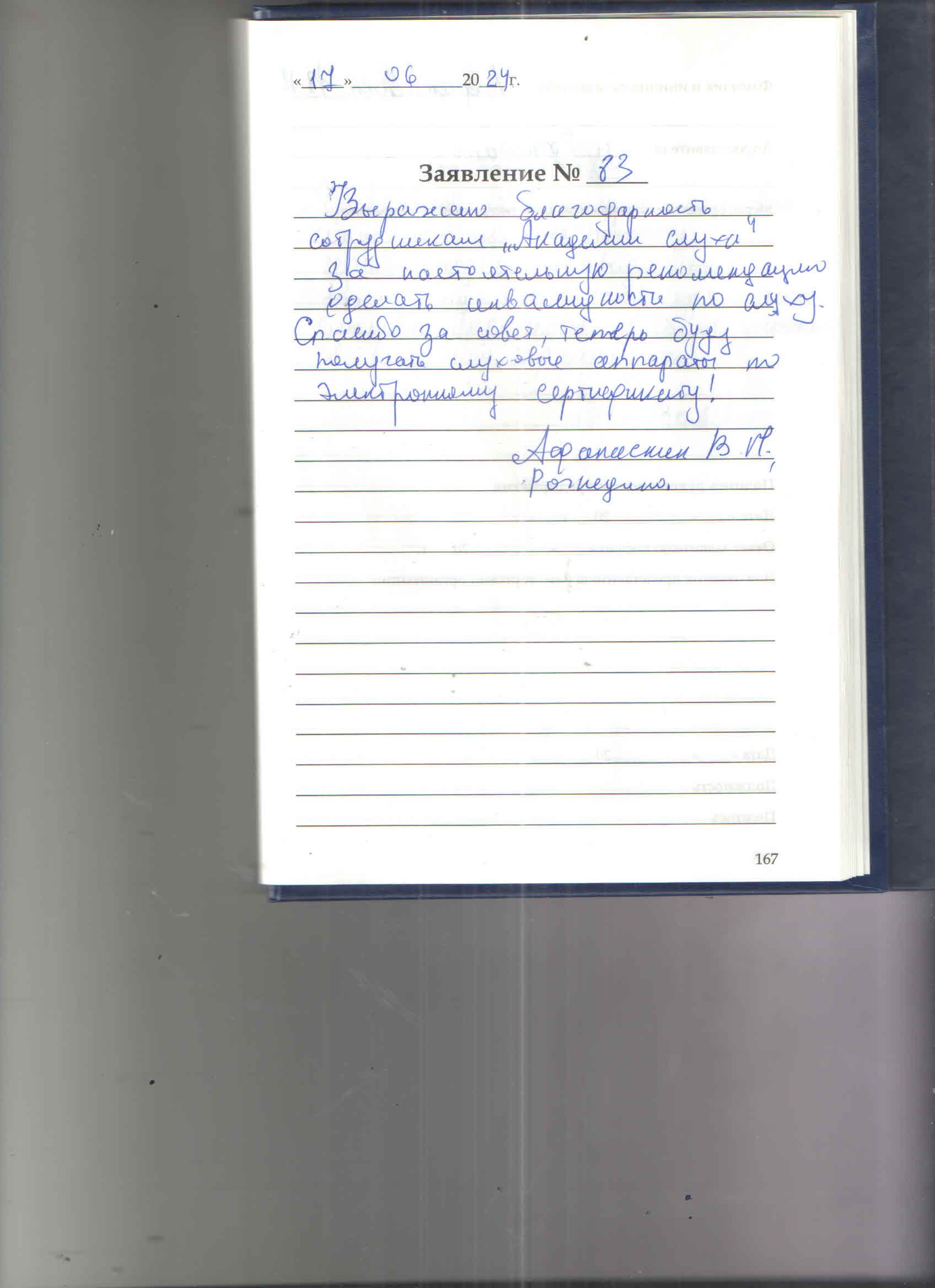 Выражаю благодарность сотруднику Академии слуха за очень грамотную консультацию, за проведение теста слуха, за радужный прием
