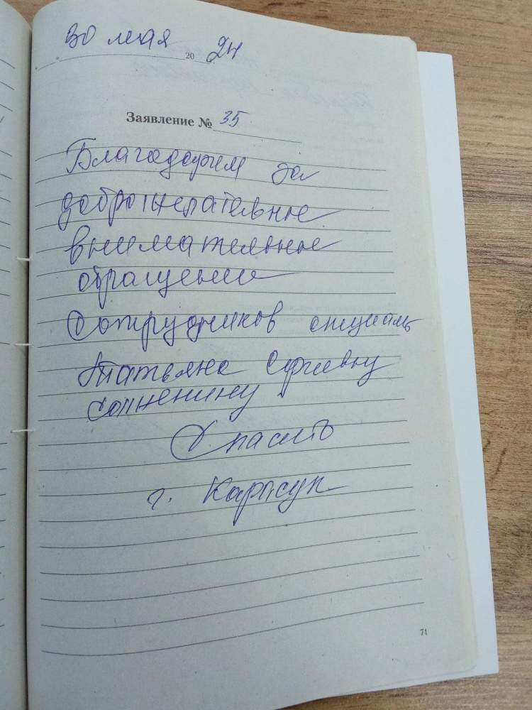 Благодарим за добросовестное внимательное обращение сотрудников специалиста Татьяну Сергеевну Саженину. Спасибо.