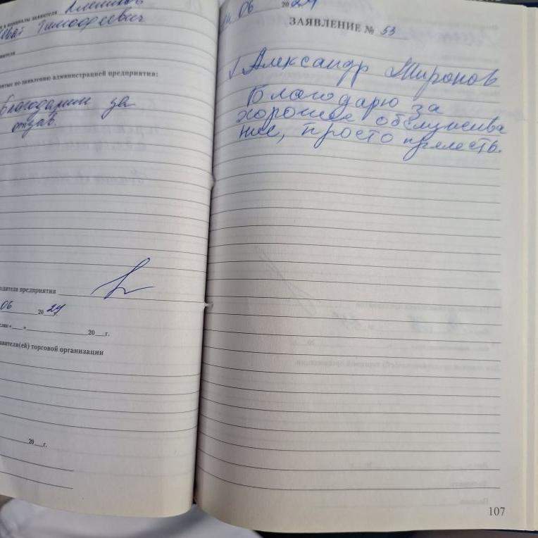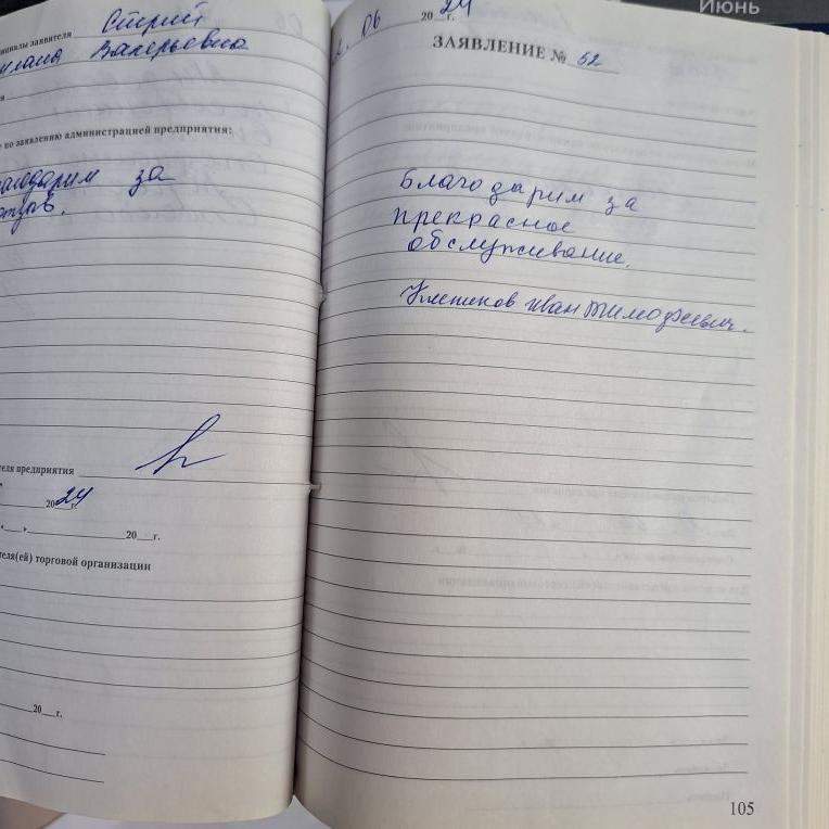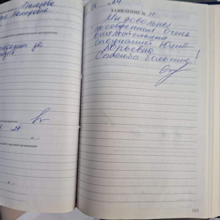 Спасибо всем сотрудникам. Всё замечательно! Благодарю!