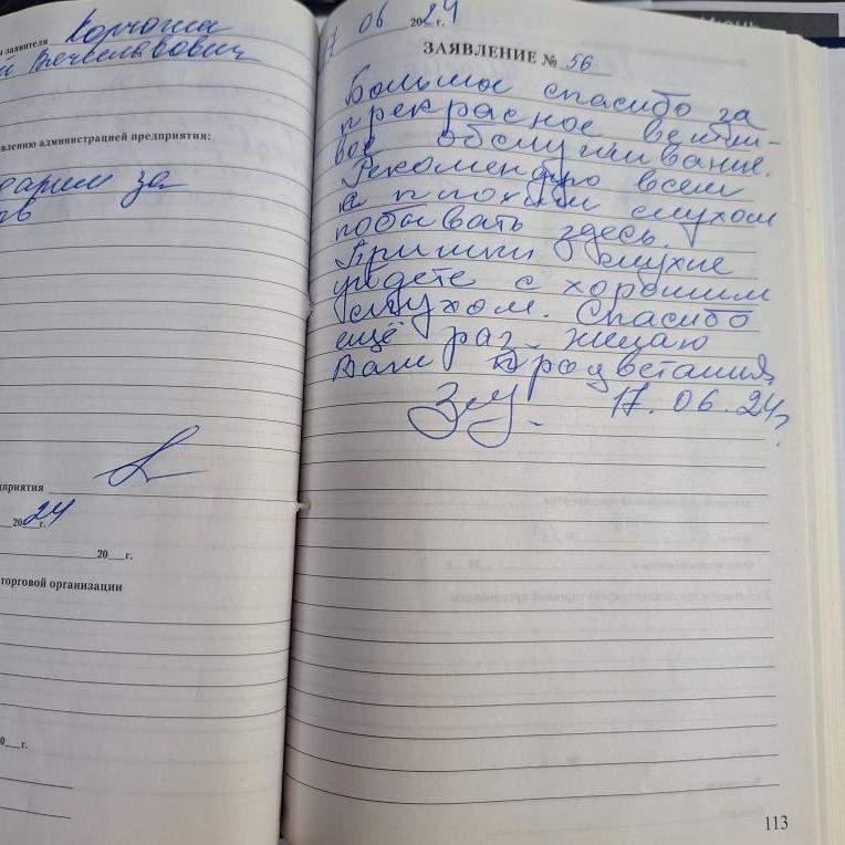 Большое спасибо за прекрасное, вежливое обслуживание. Рекомендую всем с плохим слухом побывать здесь. Пришли глухие, уйдёте с хорошим слухом. Спасибо ещё раз. Желаю Вам процветания.