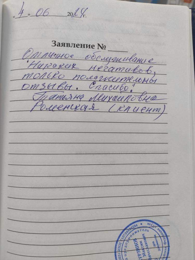 Отличное обслуживание. Ни каких негативов, только положительные отзывы. Спасибо!