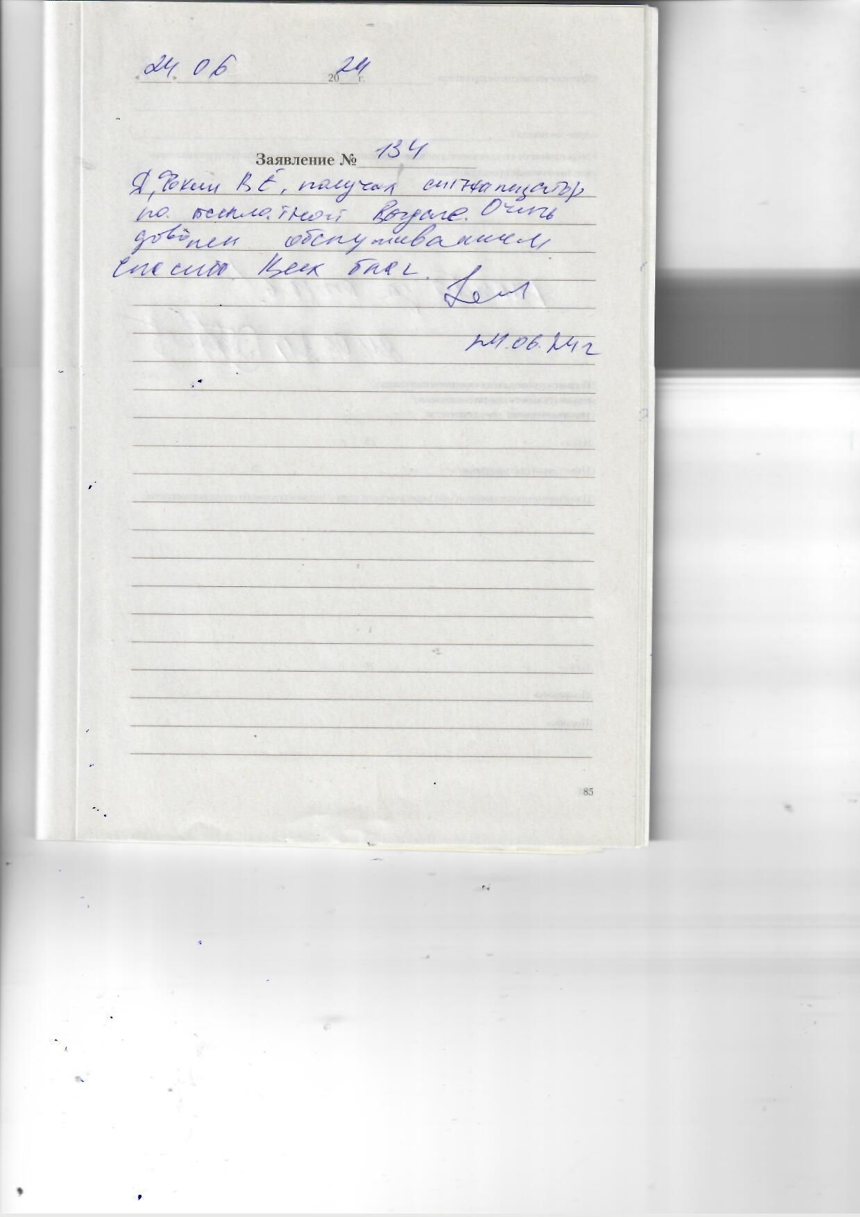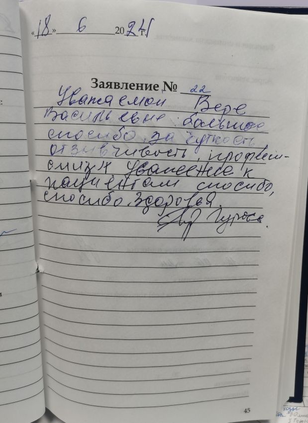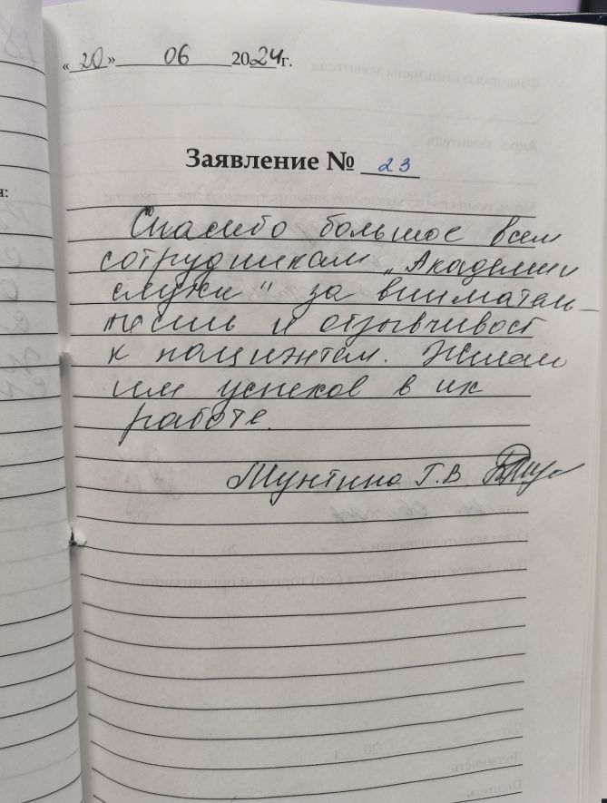 06.06.2024 Большое спасибо за оказание помощи в выборе слухового аппарата и вкладыша. Сотрудник Людмила Анатольевна доходчиво объяснила и спрашивала при подборе вкладыша. Спасибо вам большое! Отдельное спасибо за предоставленный чай (мы приехали с района). Очень внимательный и доброжелательный персонал! Спасибо за подарок в виде чехла !!!