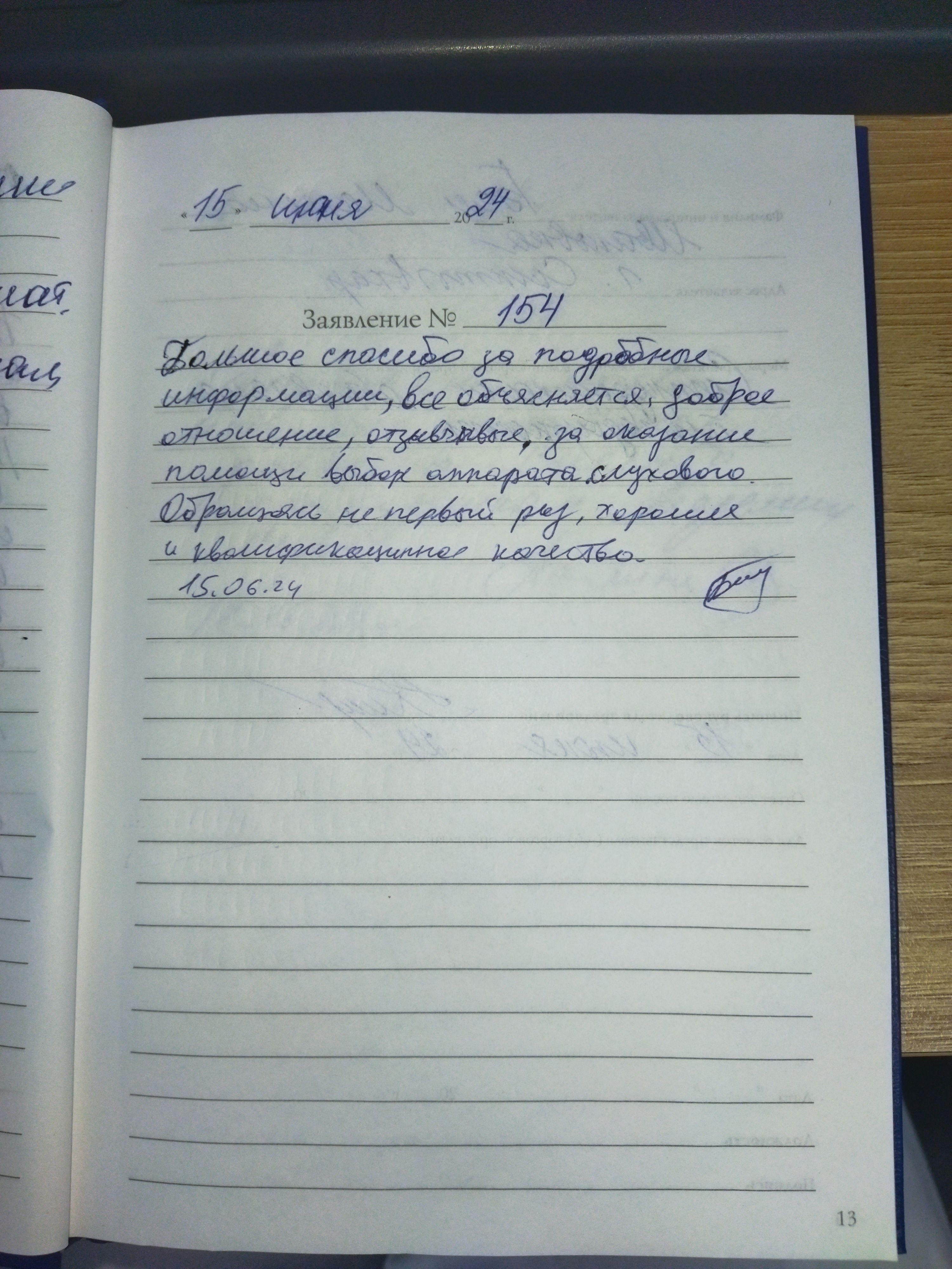 15.06.2024 Большое спасибо за подробные информации, все объясняется, доброе отношение, отзывчивые, за оказание помощи в выборе аппарата слухового. Обращаюсь не первый раз, хорошее и квалификационное качество.