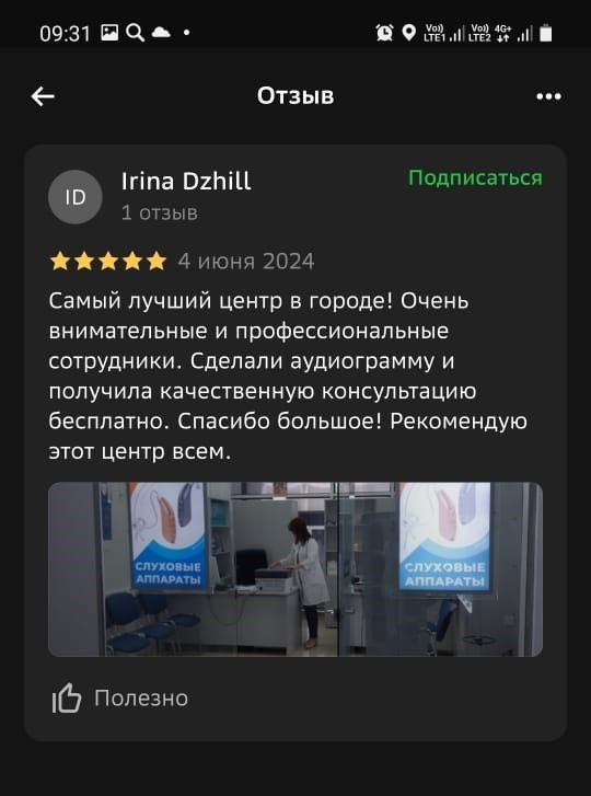 Самый лучший центр в городе! Очень внимательные и профессиональные сотрудники. Сделали аудиограмму и получила качественную консультацию бесплатно. Спасибо большое! Рекомендую этот центр всем.