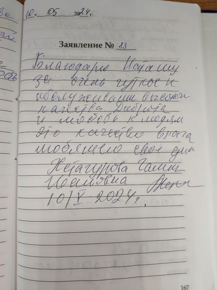 Спасибо за хорошее обслуживание, были все внимательны, вежливы, все хорошо объяснили. Благодарю!