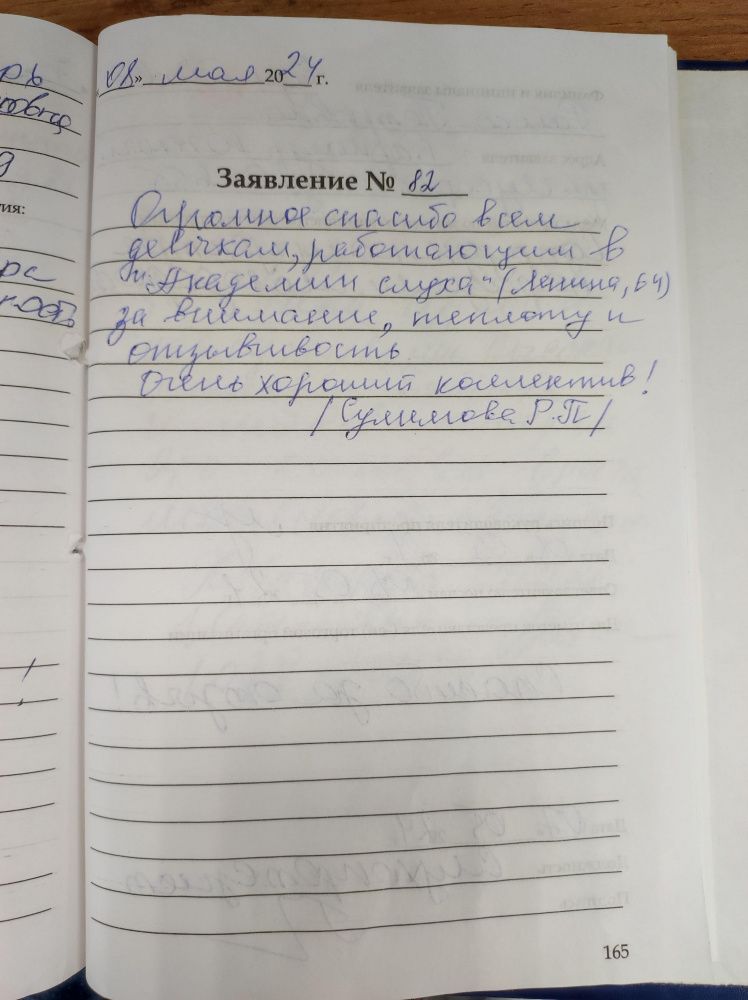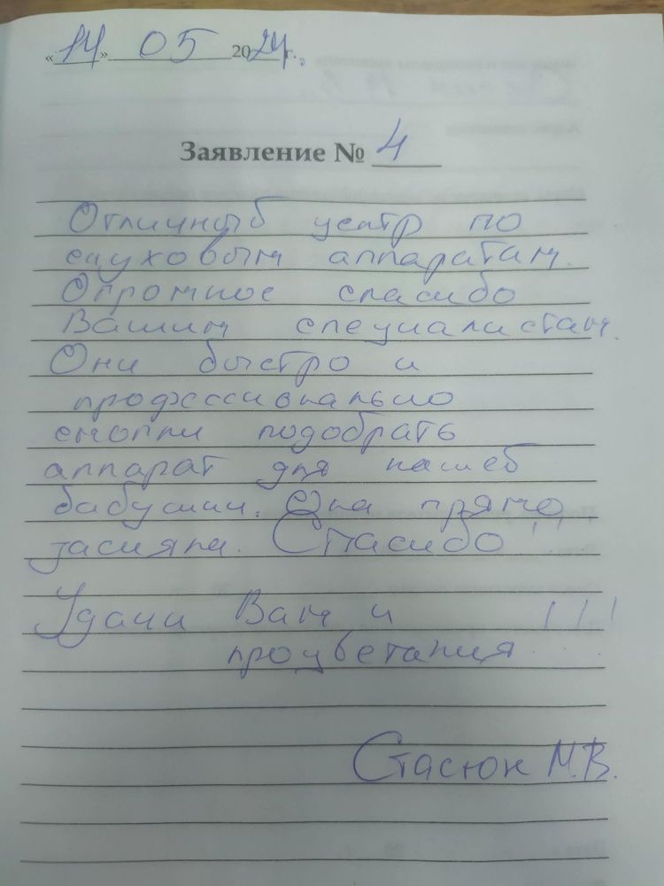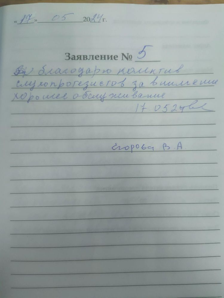 Благодарю коллектив слухопротезистов за внимание и хорошее обслуживание.