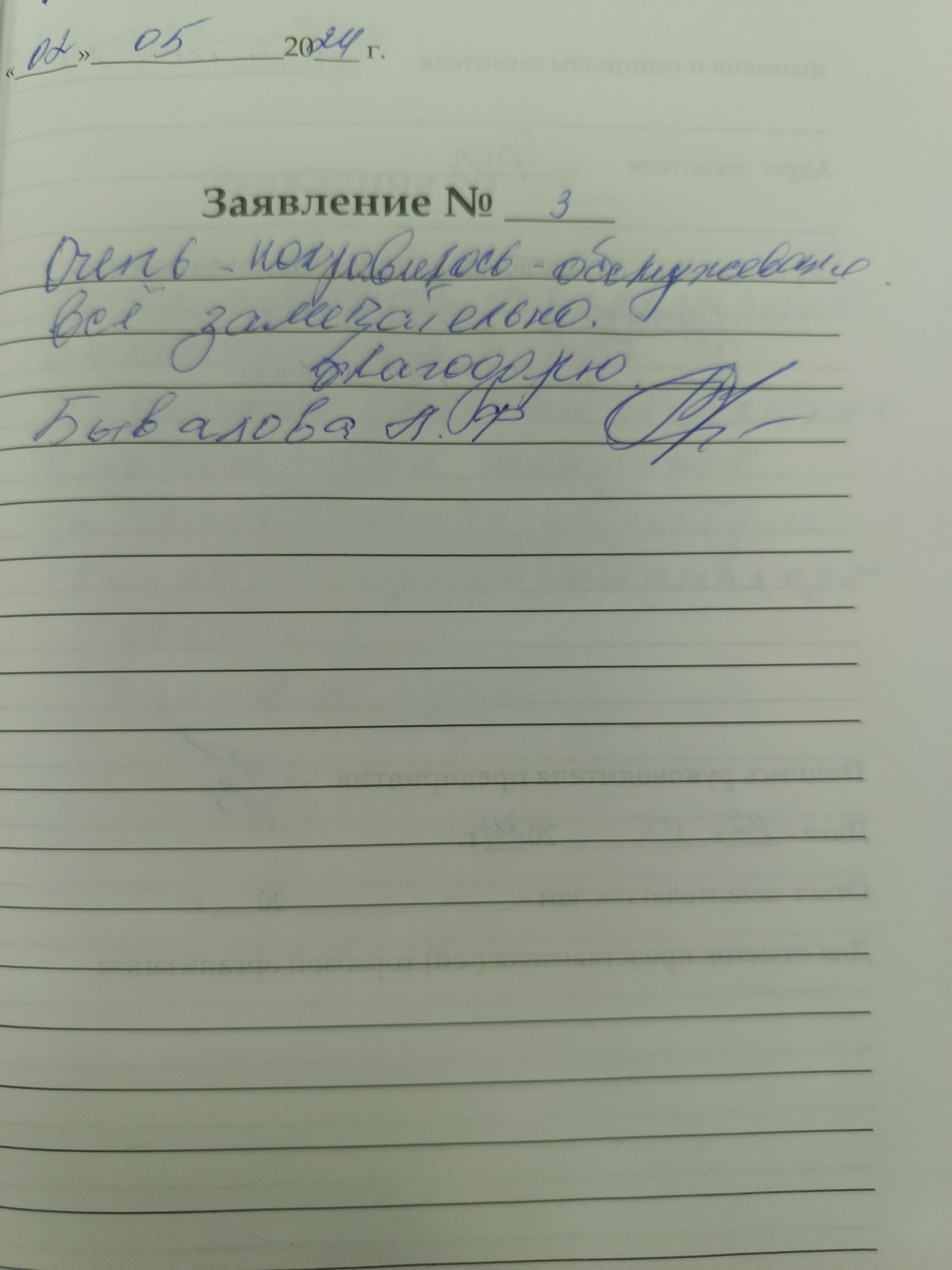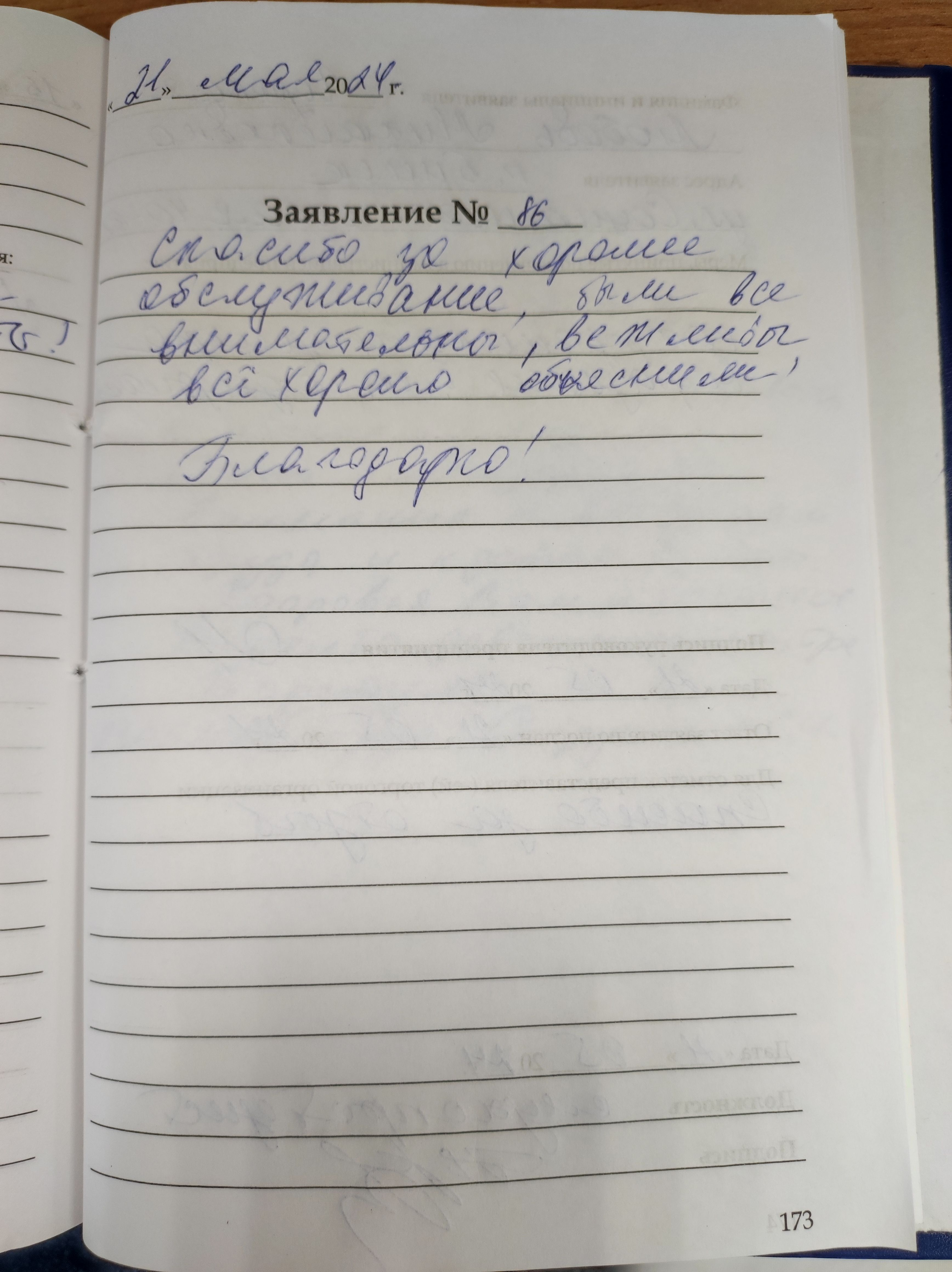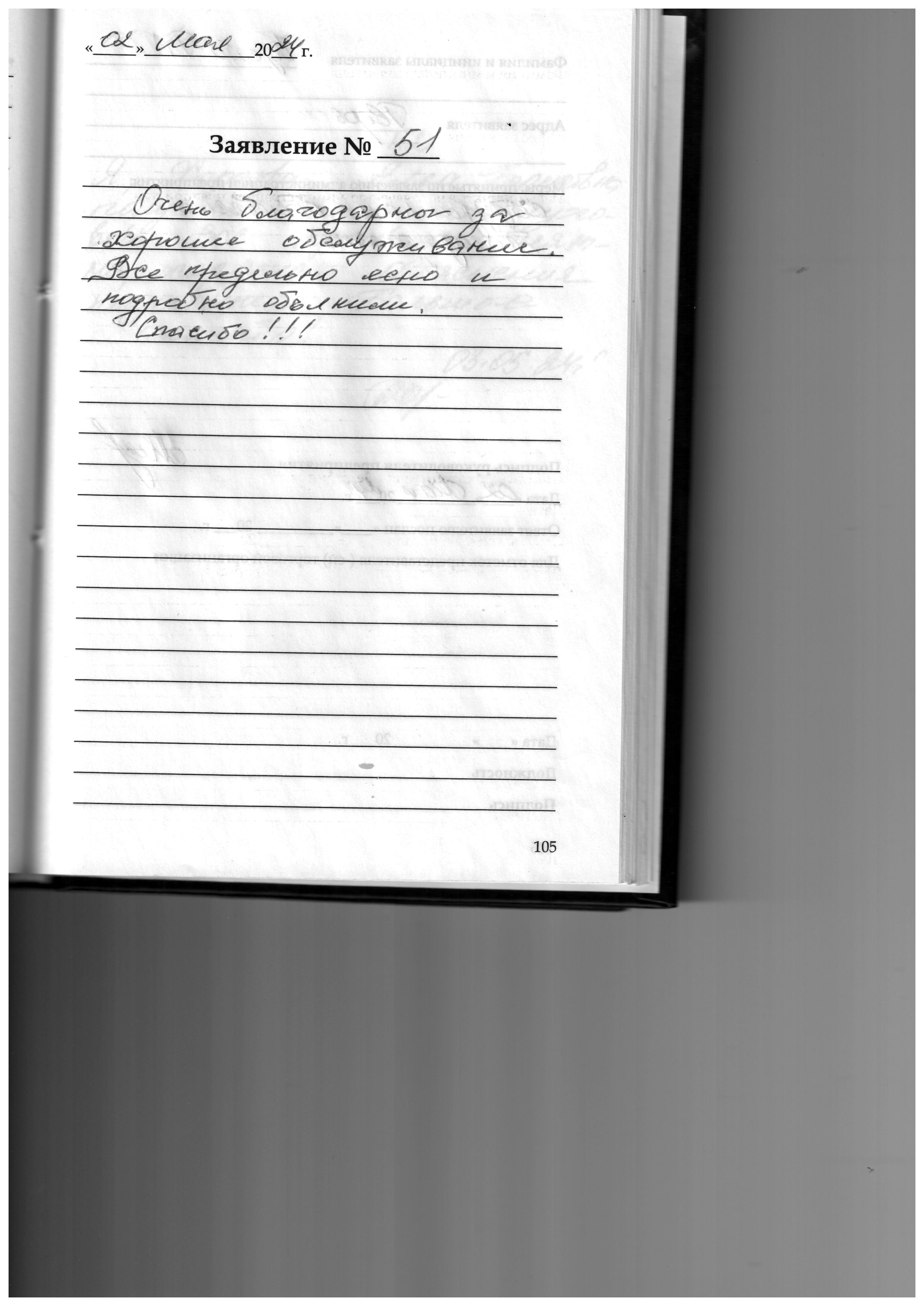 Спасибо за хорошее обслуживание, все были внимательны, вежливы, все хорошо объяснили.