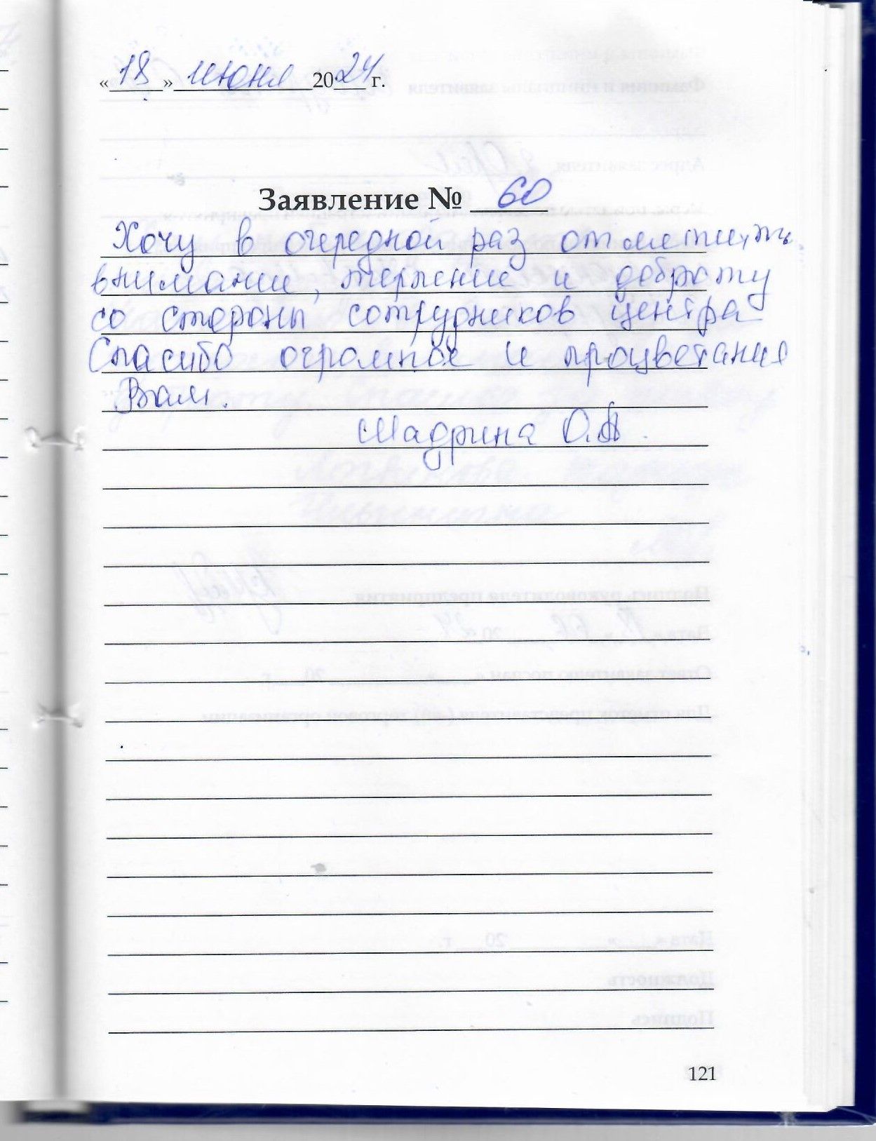 Хочу выразить благодарность сотрудникам центра за хорошее отношение, понимание и профессионализм. Спасибо.