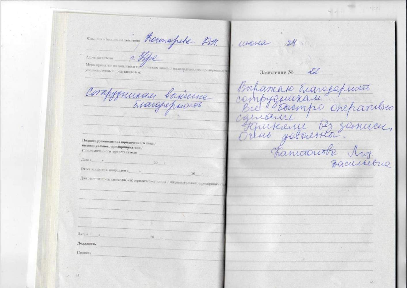Я. Васютичев В Н , выражаю искреннюю благодарность Аканеевой А Н за аккуратное . внимательное отношение . высокую ответственность , за тщательную и безупречную настройку слуховых аппаратов . отличное терпение и настойчивость при достижении поставленной цели. Ходатайствую о поощрении Аканеевой А Н и выражаю признательность всему коллективу.