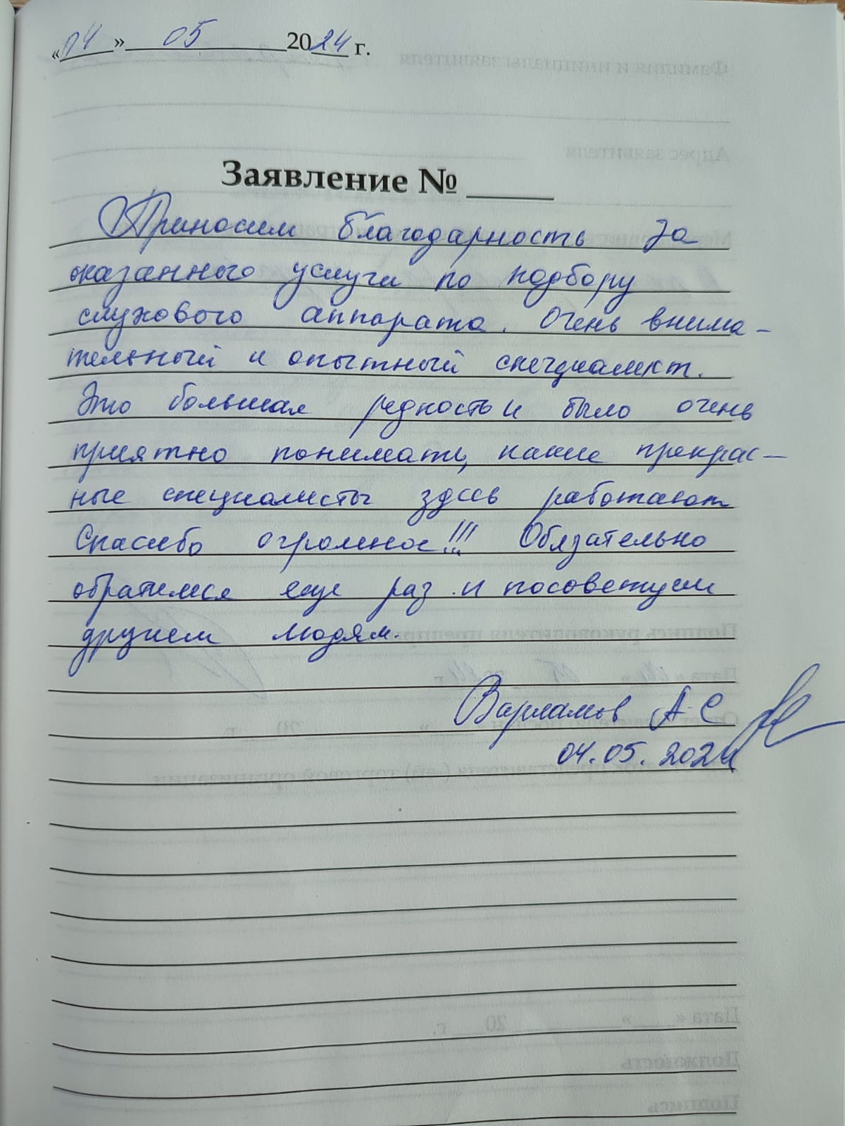 Приносим благодарность за оказанные услуги по подбору слухового аппарата. Очень внимательный и опытный специалист. Это большая редкость и было очень приятно понимать какие прекрасные специалисты здесь работают. Спасибо огромное!!! Обязательно обратимся еще раз и посоветуем другим людям.