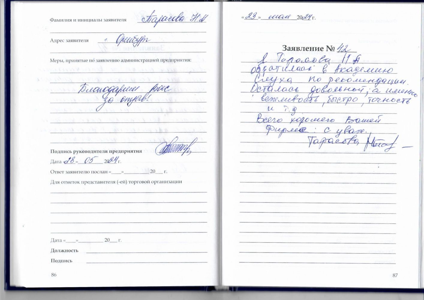 Я, Тарасова Н.А., обратилась в Академию слуха по рекомендации. Осталась довольной, а именно вежливость, быстро, точность и т.д.