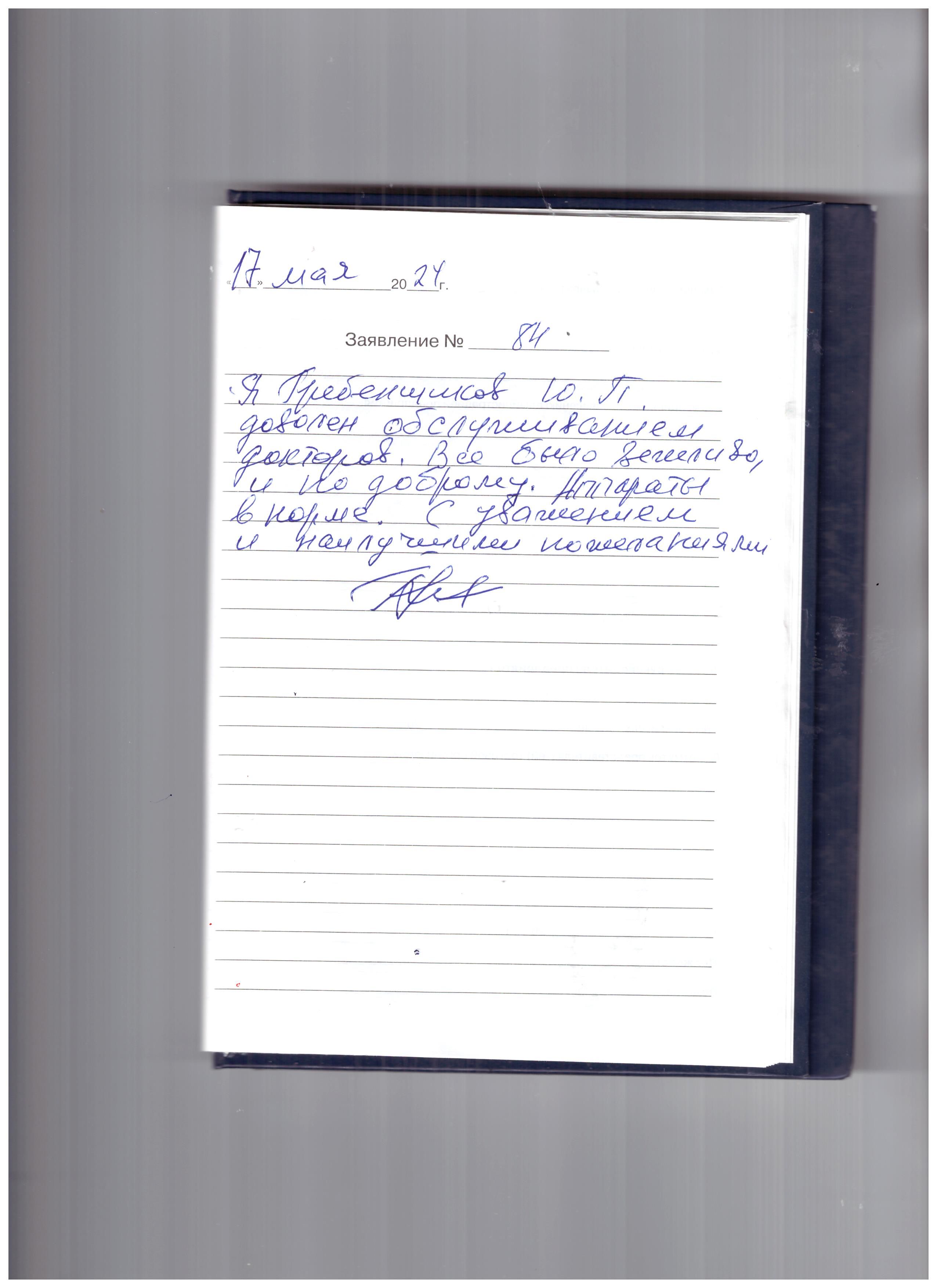 я Гребенщиков Ю.П. доволен обслуживанием докторов. Все было вежливо, и по доброму. Аппараты в норме.