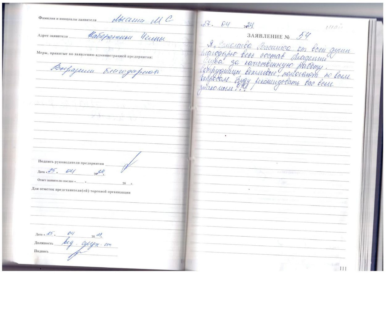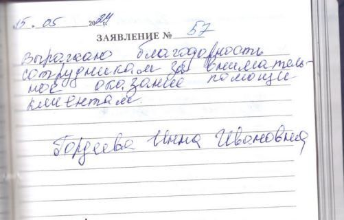 Выражаю благодарность сотрудникам за внимательное оказание помощи клиентам.