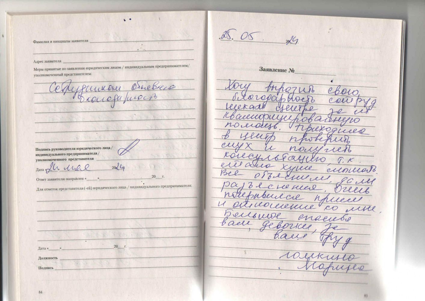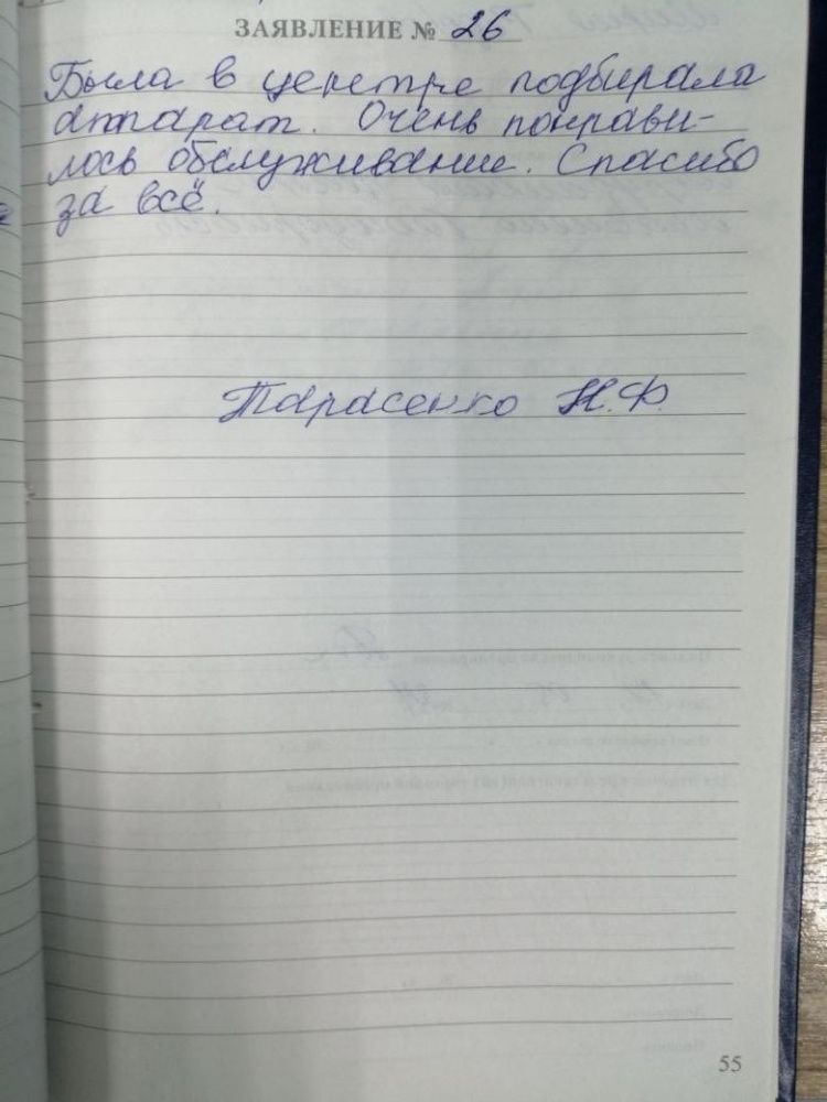 Хочу выразить свою благодарность сотрудникам центра за их квалифицированную помощь. Приходила в центр проверить слух и получить консультацию, т. к. стала хуже слышать. Все объяснили, дали разъяснения. Очень понравился прием и отношение ко мне. Большое спасибо вам, девочки, за ваш труд.