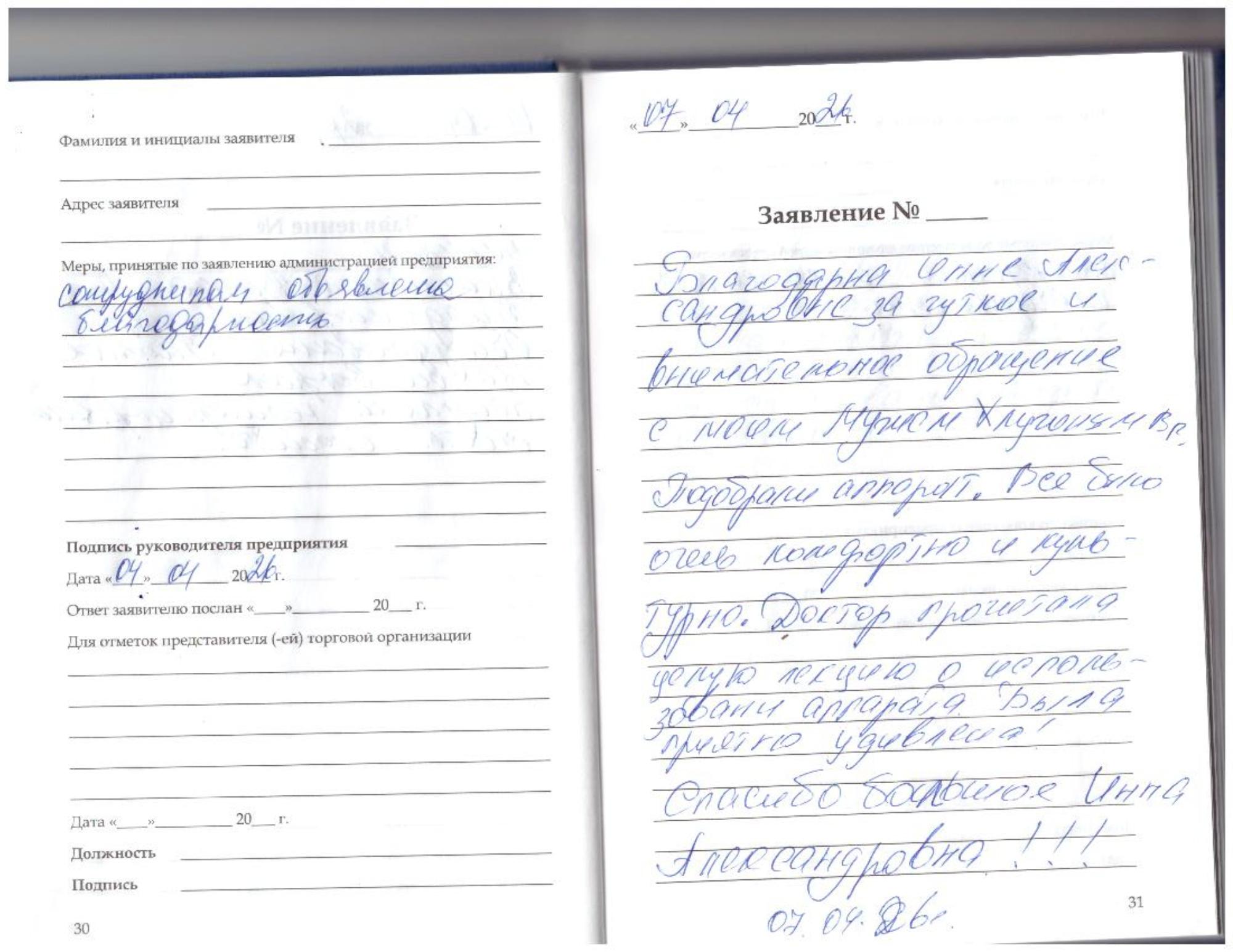 Я, Румянцева Е.В. была на приеме у Инны Александровны, Благодарю ее за чуткое отношение , любовь к работе. Желаю коллективу отличной работы.
