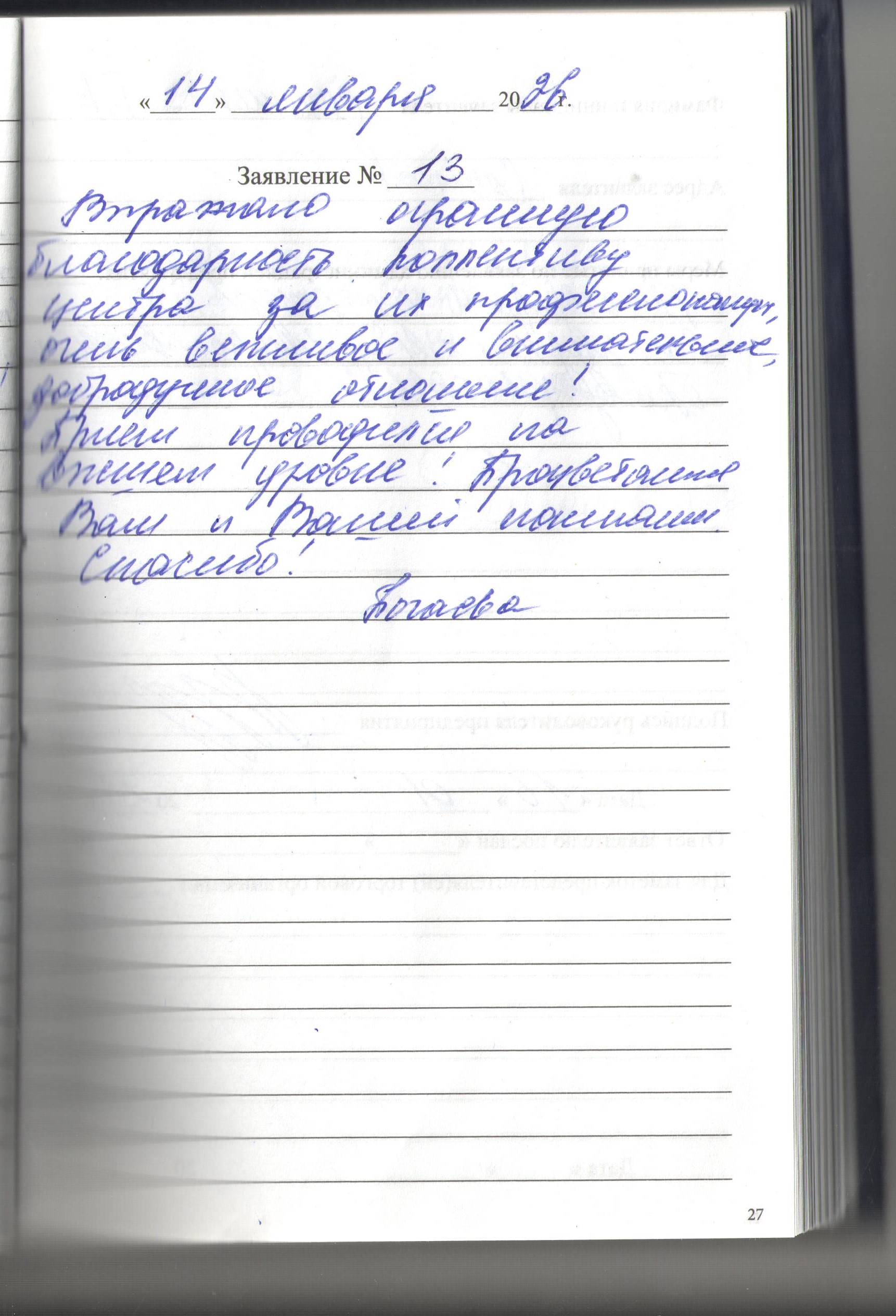 Выражаю огромную благодарность коллективу центра за их профессионализм, очень вежливое и внимательное, добродушное отношение! Прием проводится на высшем уровне! Процветания Вам и Вашей компании. Спасибо!