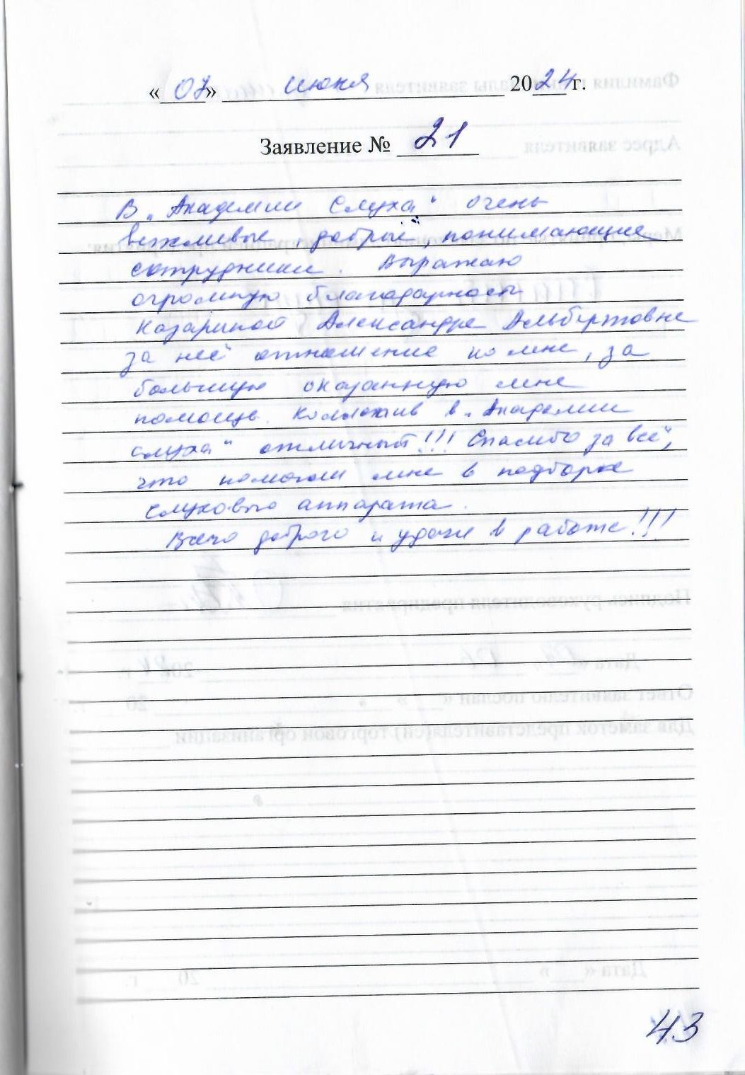 В «Академии слуха» очень вежливые, добрые , понимающие сотрудники. Выражаю огромную благодарность Казариной Александре Альбертовне за ее отношение ко мне, за большую оказанную мне помощь. Коллектив в «Академии слуха» отличный!!! Спасибо за все, что помогли мне в подборе слухового аппарата.
