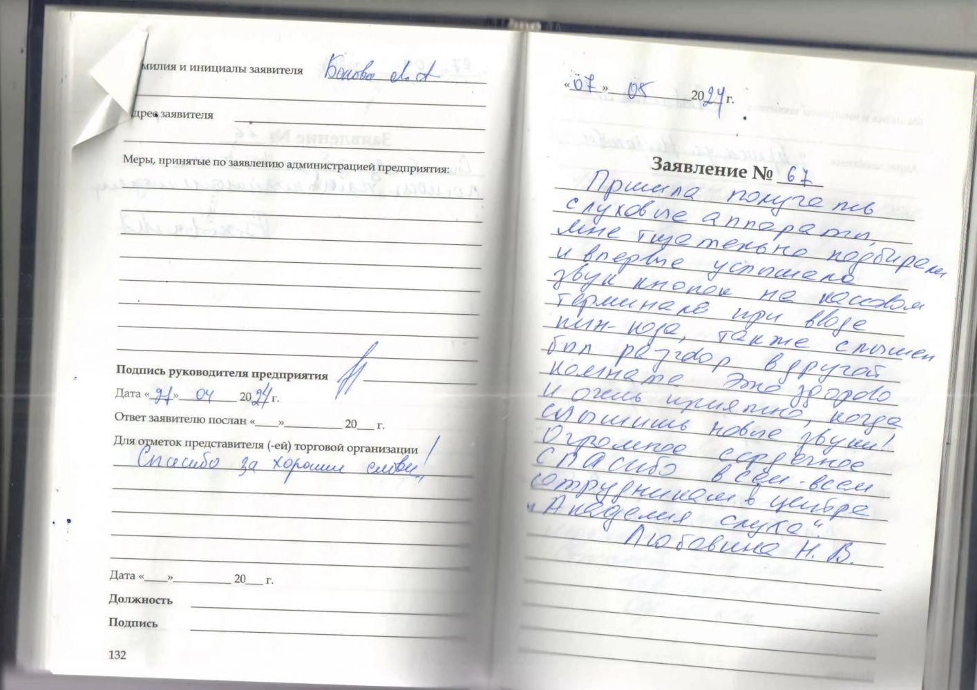 Благодарю коллектив слухопротезистов за внимание и хорошее обслуживание.