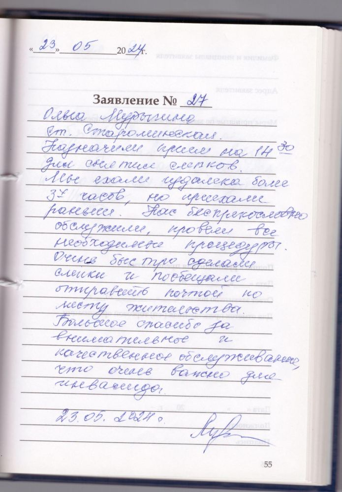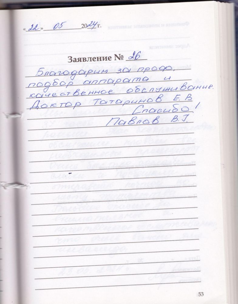 Благодарим за проф.подбор аппарата и качественное обслуживание Доктора Татаринова Е.В.. Спасибо!