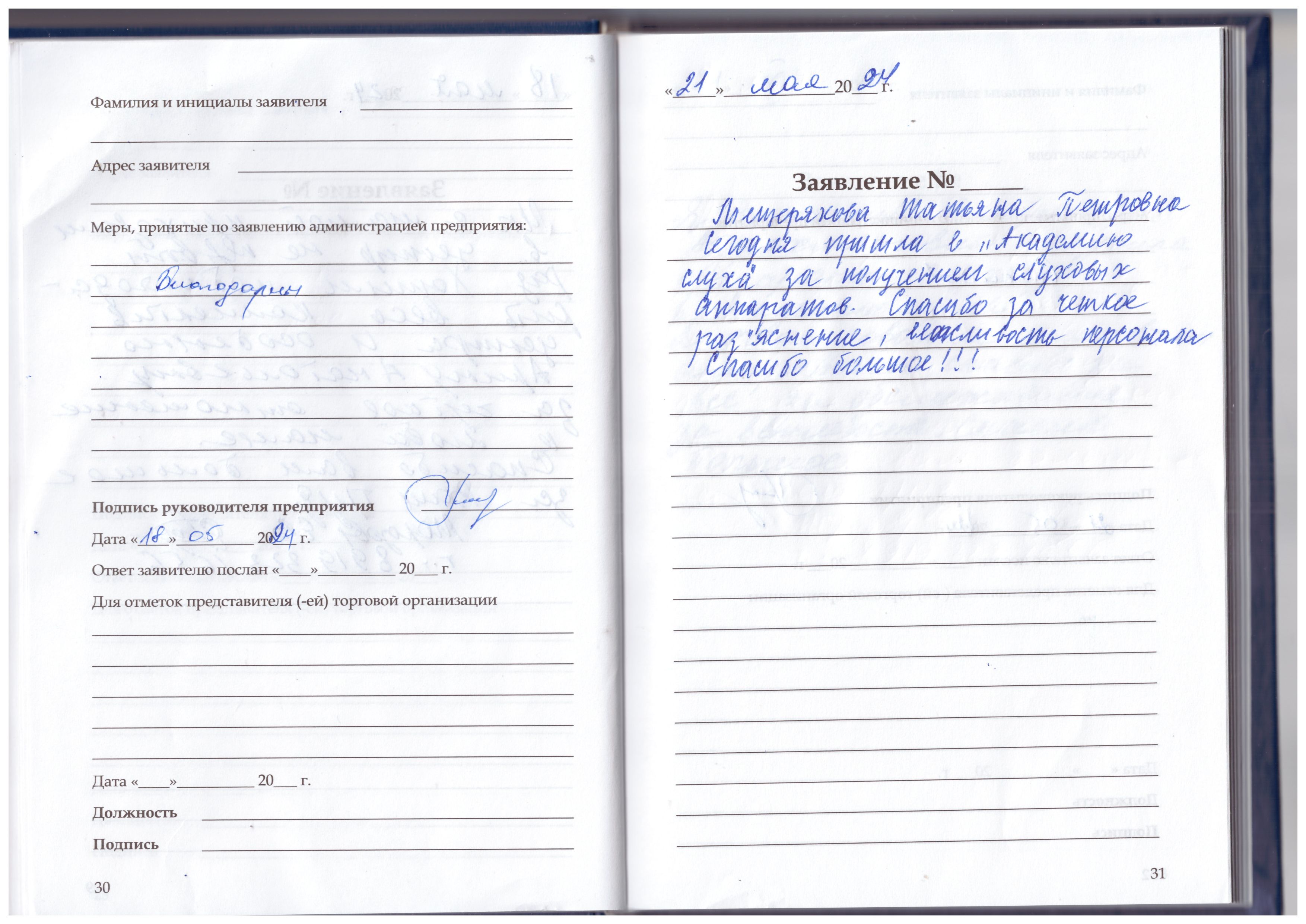 Мещерякова Татьяна Петровна сегодня пришла в «Академию слуха» за получением слуховых аппаратов. Спасибо за четкое разъяснение, вежливость персонала. Спасибо большое!!!