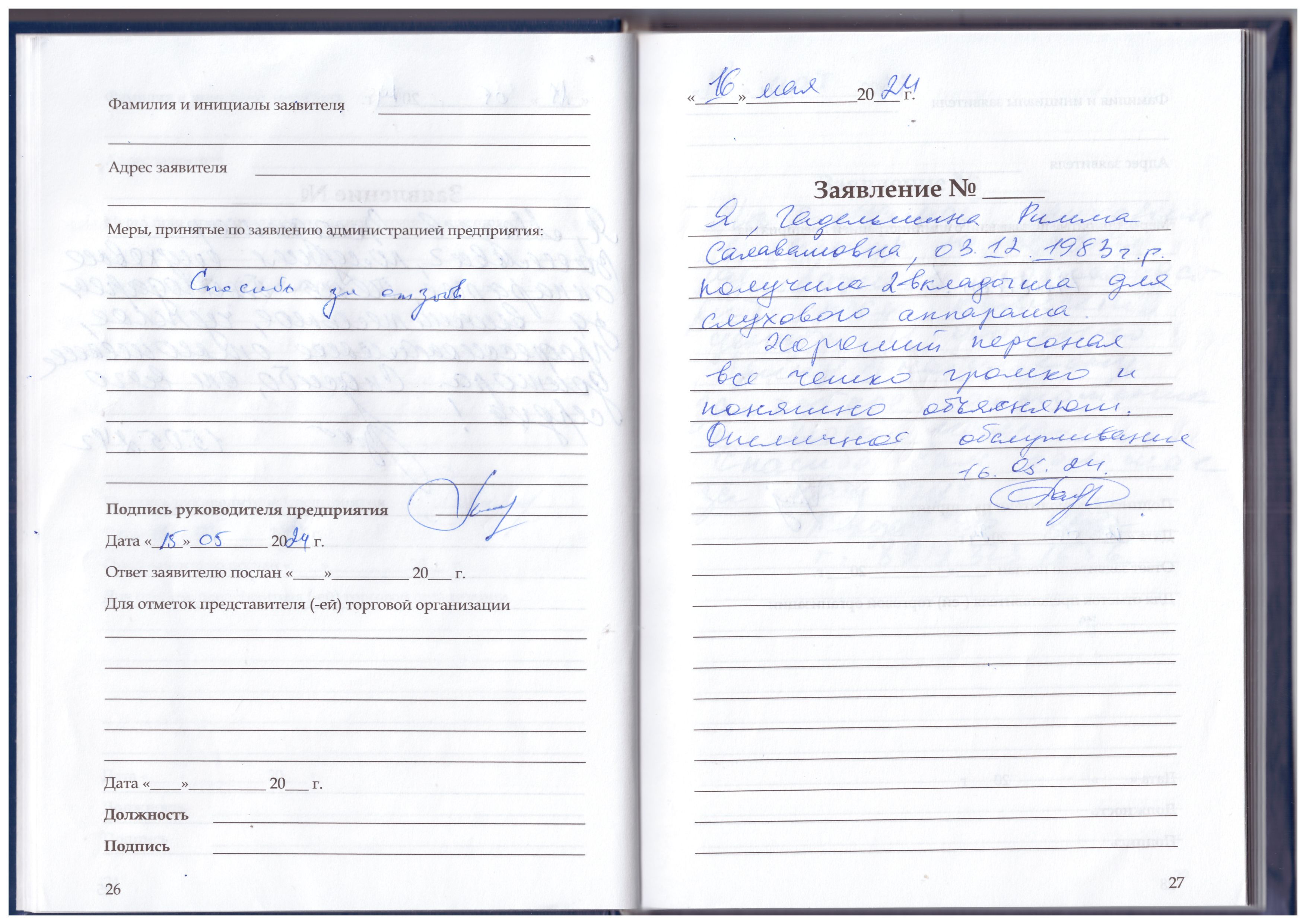 Я, Гадельшина Римма Саловатовна, 03.12.1983 получила вкладыши для слухового аппарата.