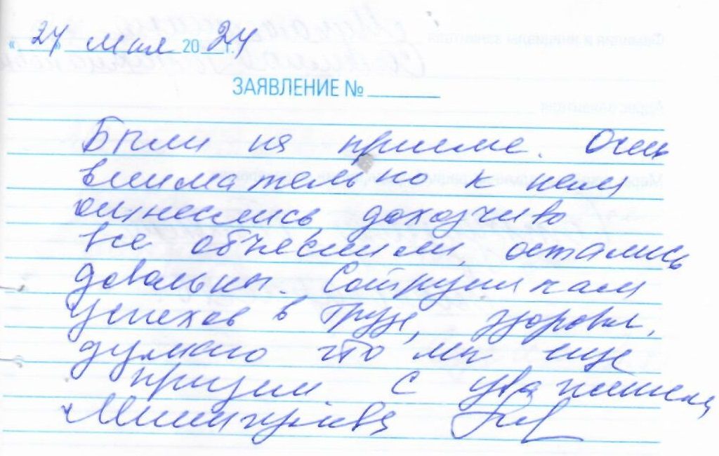 Были на приеме. Очень внимательно к нас отнеслись, доходчиво все объяснили, остались довольны. Сотрудникам успехов в труде, здоровья, думаю что мы еще придем. С уважением, Мухаметшина