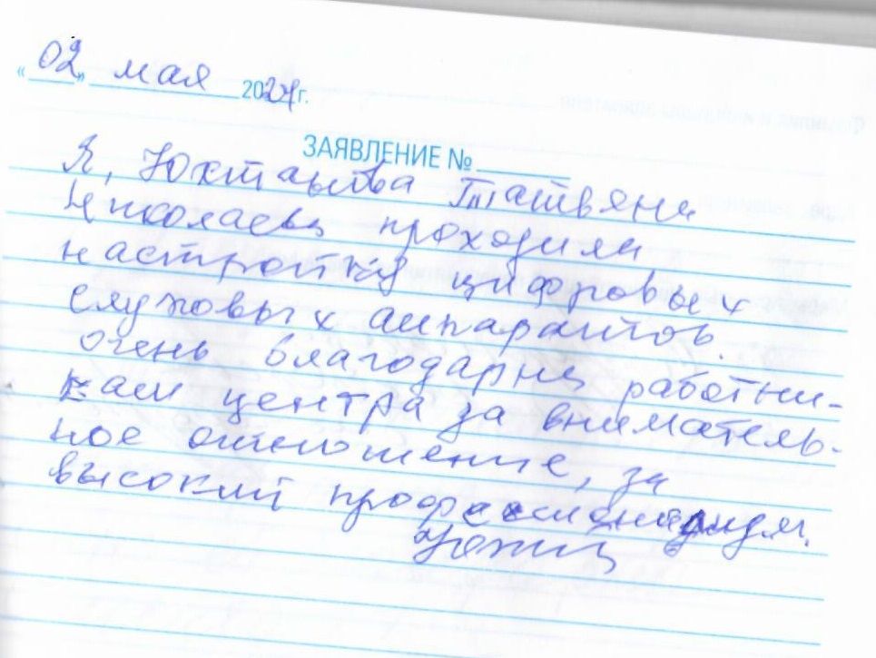 Я, Юхтанова Татьяна Николаевна, проходила настройку цифровых слуховых аппаратов. Очень благодарна работникам центра за внимательное отношение, за высокий профессионализм.