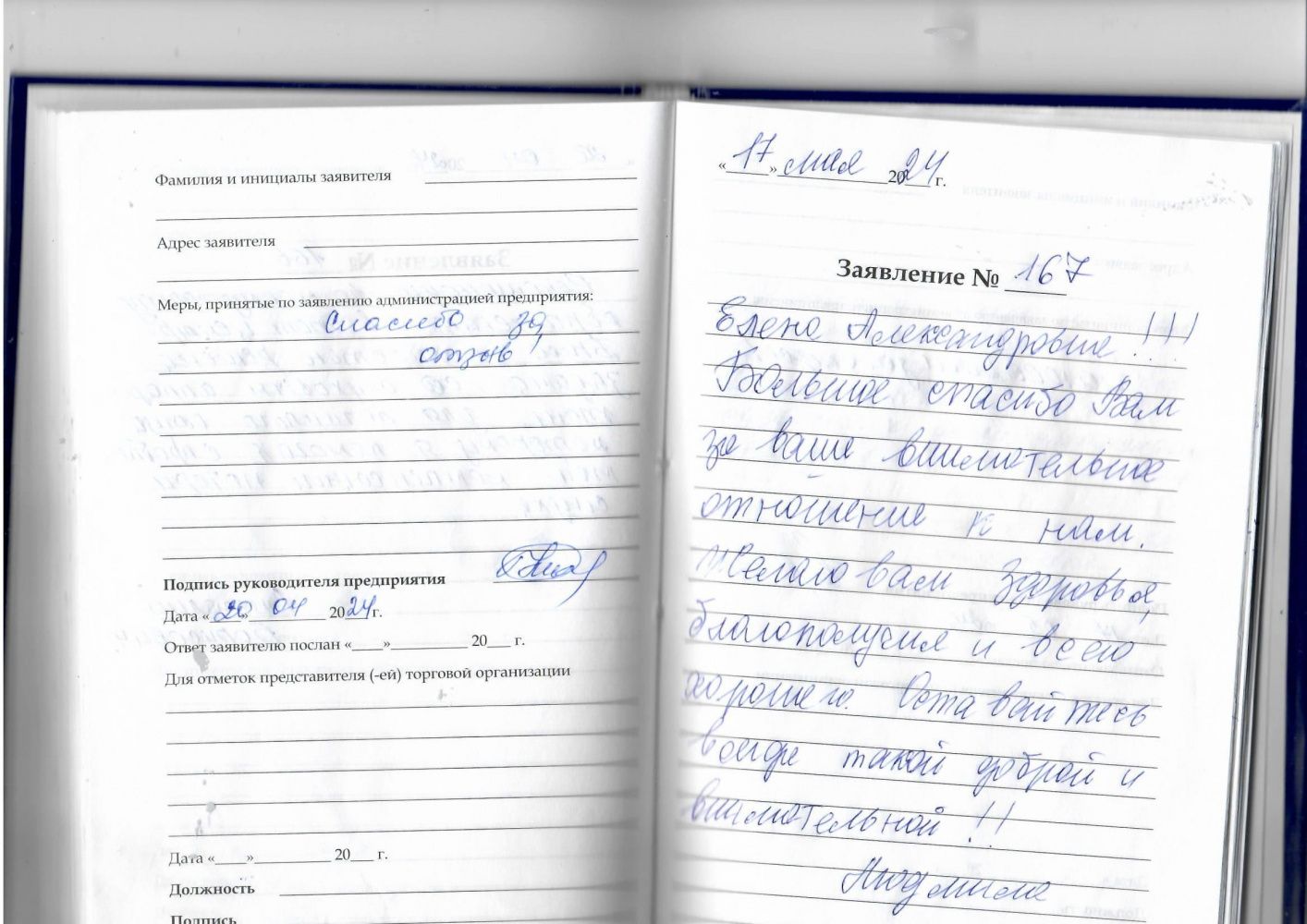 ЗАЯВЛЕНИЕ №167