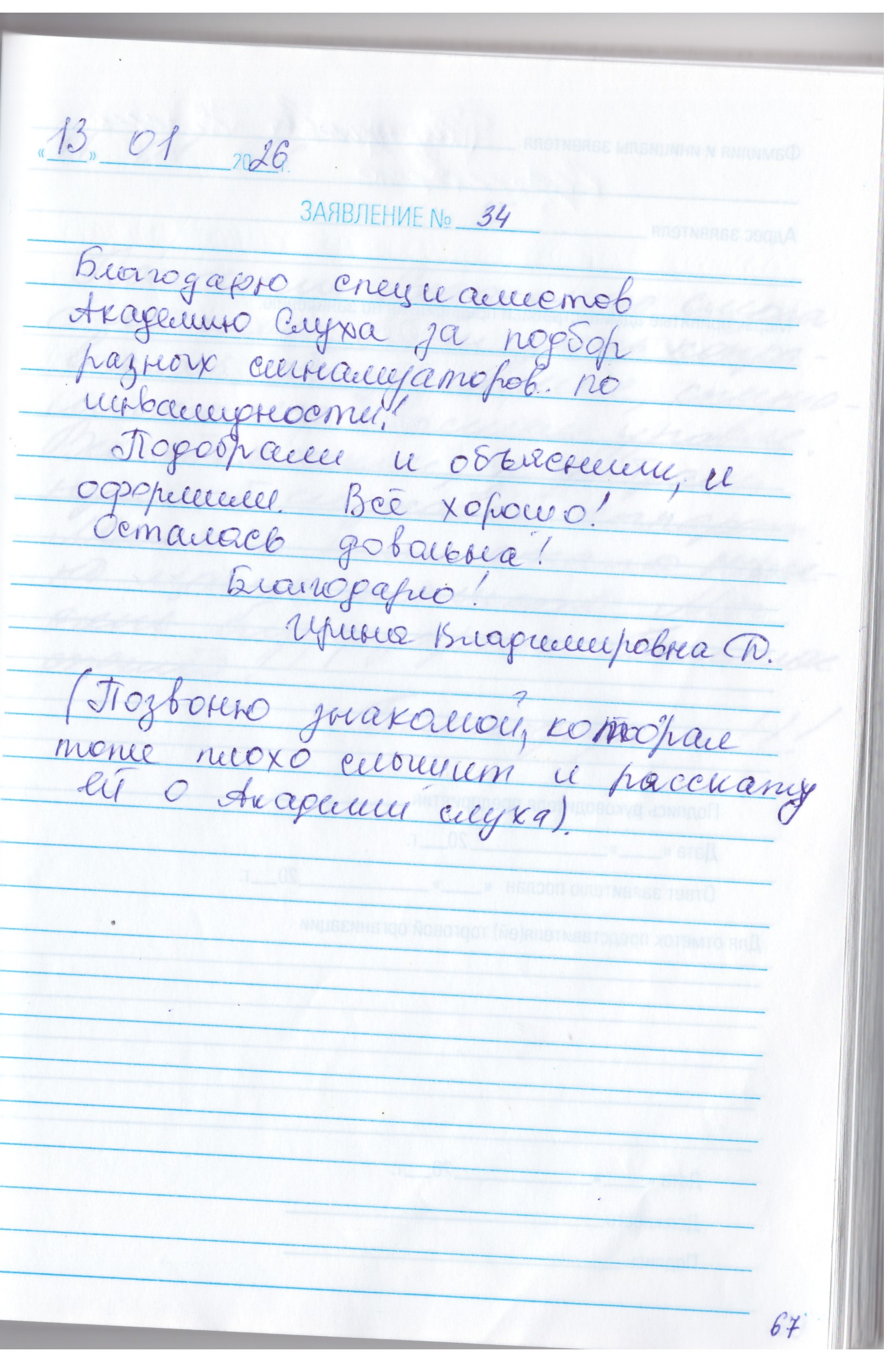 Хочу от всей души пожелать коллективу "Академии Слуха" Процветания, здоровья, успехов в благородном деле. Удачи во всем. Щастья вашим семьям. 21.01.26г. Уколина Г.Ф.