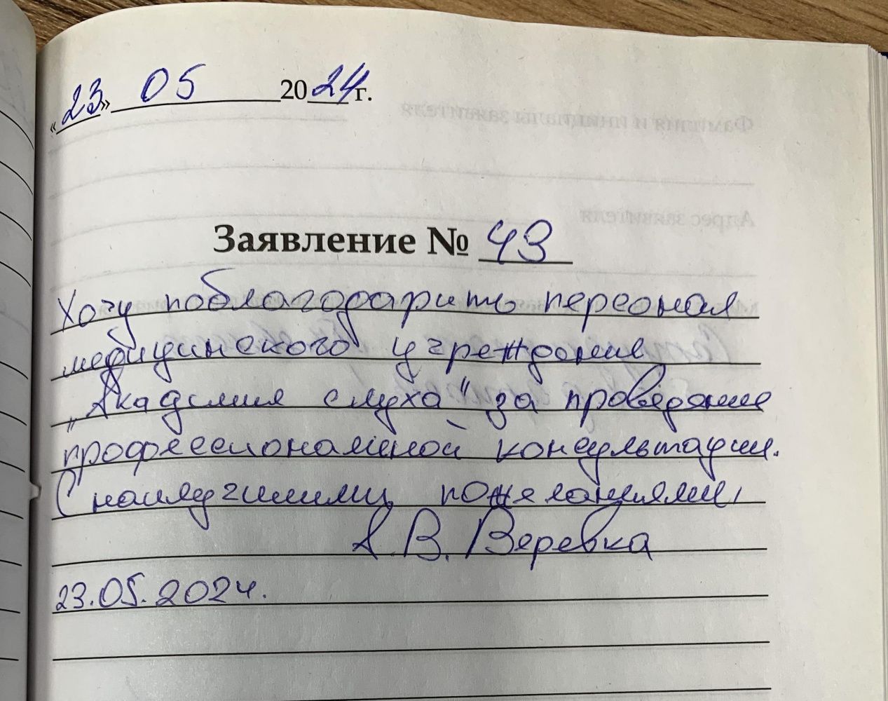 Хочу поблагодарить персонал медицинского учреждения «Академия Слуха» за проведение профессиональной консультации. С наилучшими пожеланиями, А. В. Веревка. 23.05.2024
