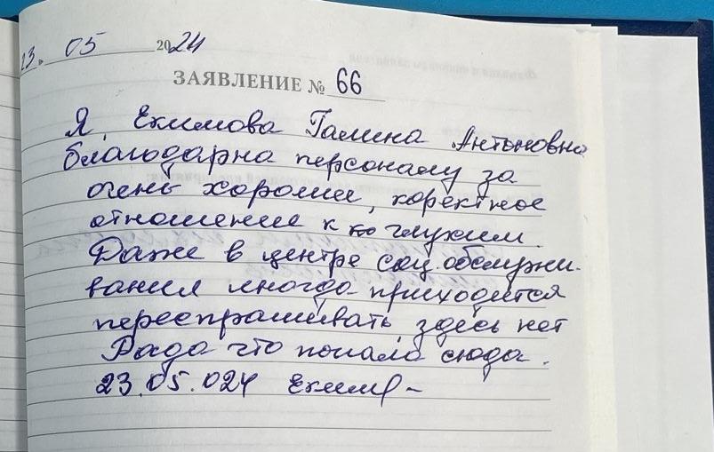 Я, Екимова Галина Анатольевна благодарна персоналу за очень хорошее ,корректное отношение к глухим. Даже в центре соц.обслуживания иногда приходится переспрашивать,здесь нет.Рада,что попала сюда.