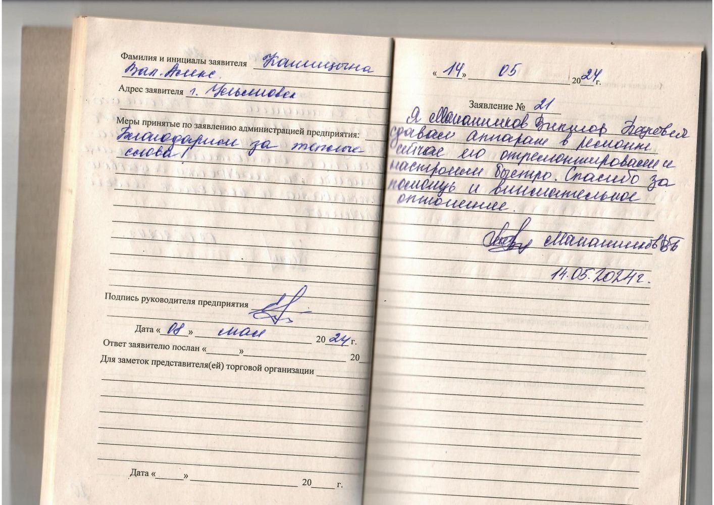 Я,Мананников Виктор Петрович сдавал аппарат в ремонт сейчас его отремонтировали и настроили быстро.Спасибо за помощь и внимательное отношение.