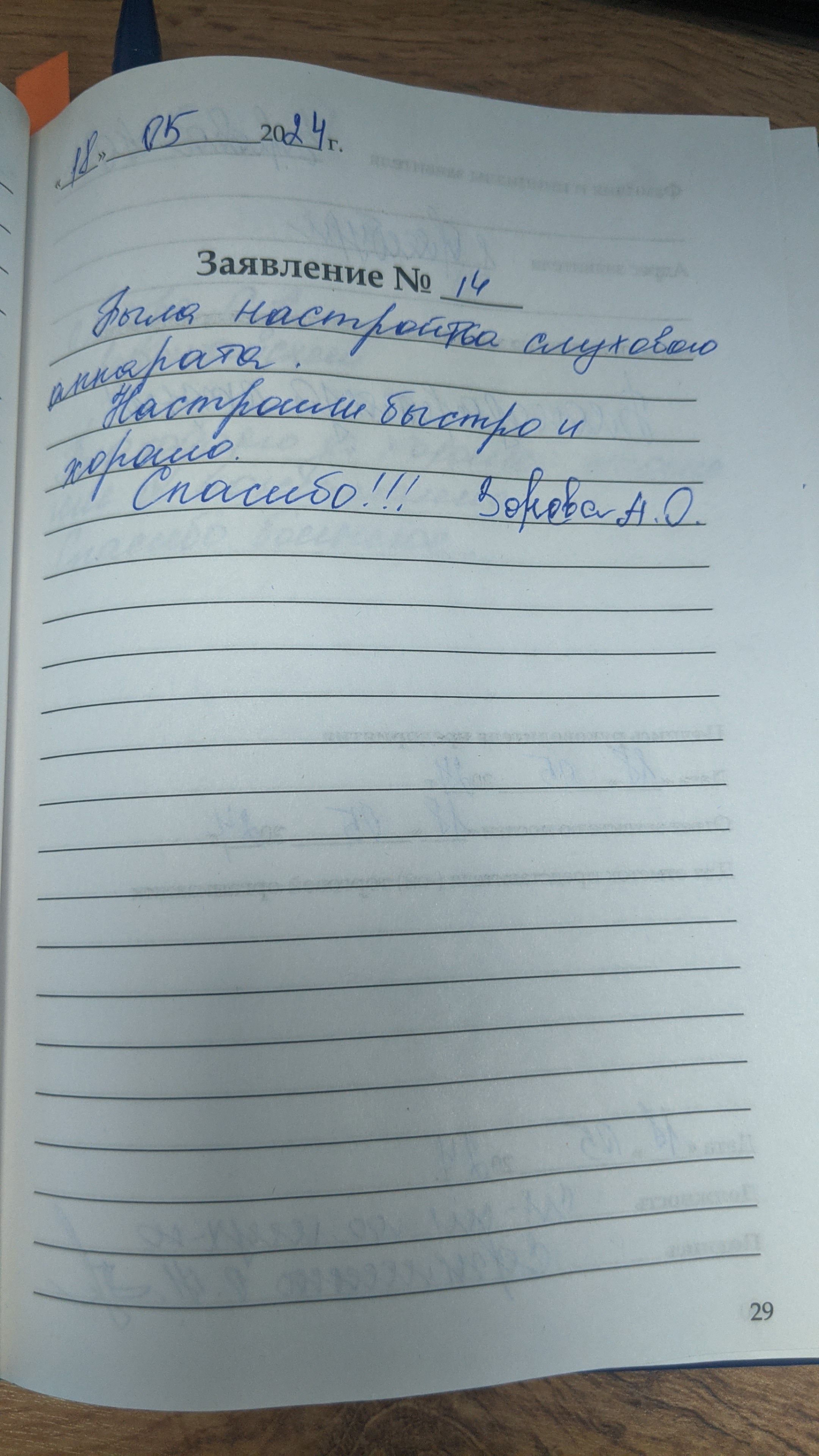 Спасибо специалистам Академии Слуха. Подобрали слуховой аппарат для мамы. Все объяснили.Очень довольны обслуживанием.