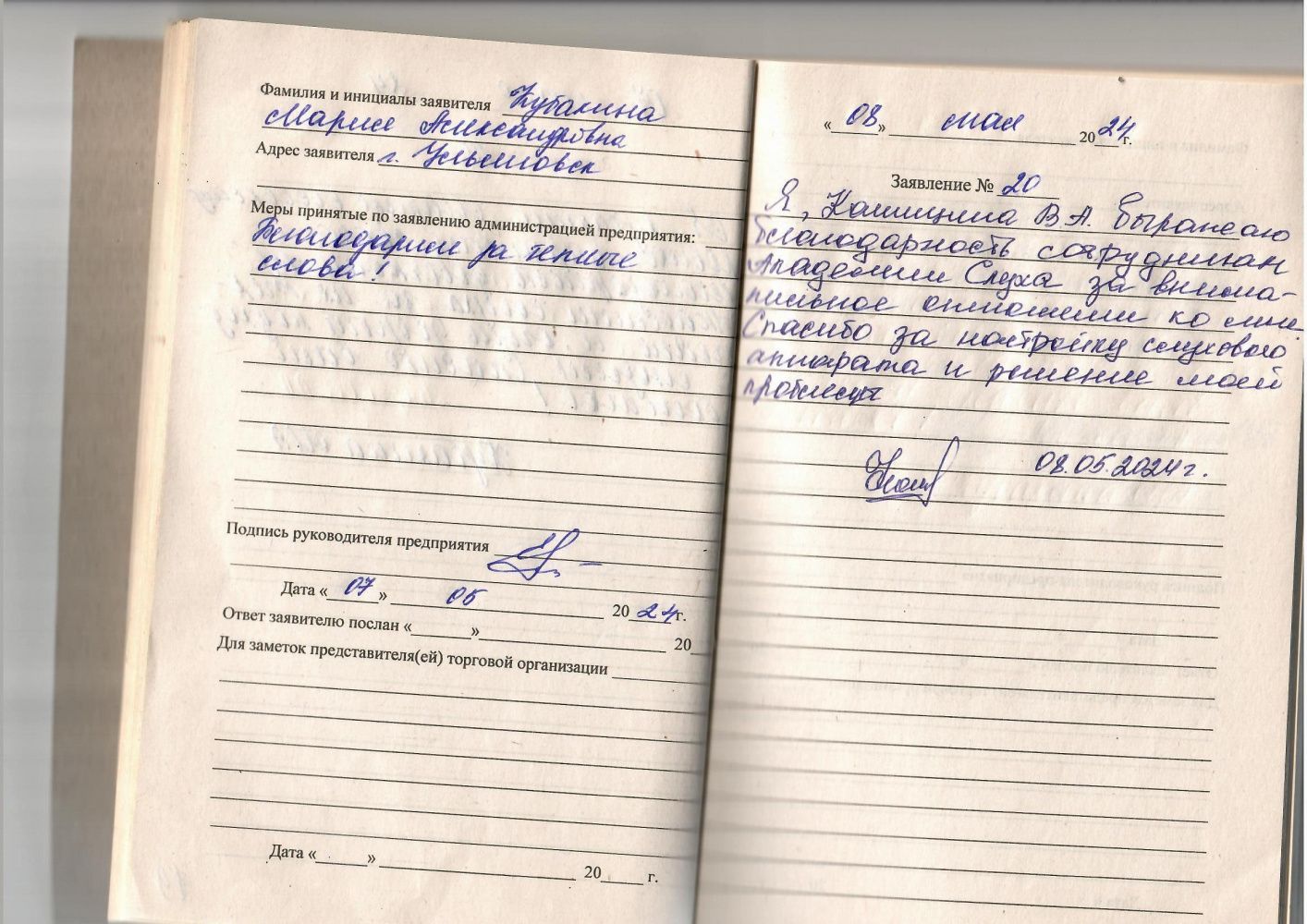 Я, Кубанина Мария Александровна выражаю свою благодарность девочкам из Академии Слуха за х терпение и очень добрый подход к людям.Спасибо вам большое!