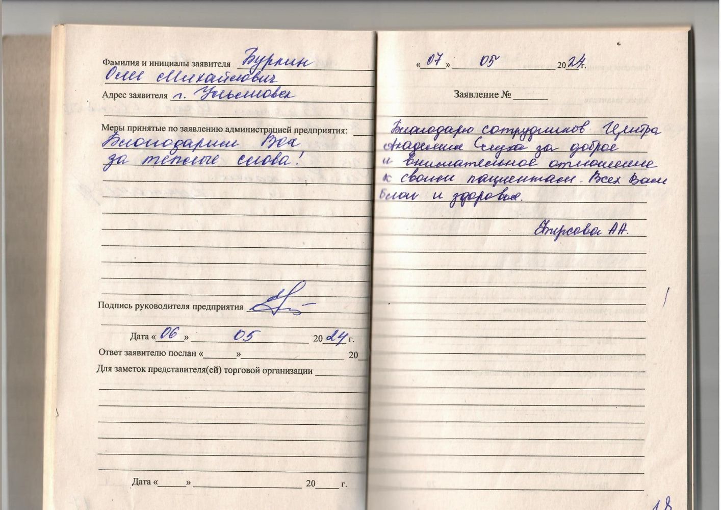 Я Буркин Олег Михайлович хочу поблагодарить сотрудников Центра за чуткое отношение и внимание.